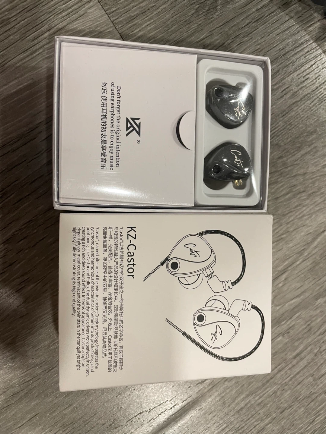 Selling a pair of KZ Castor earphones in the Gray/Harman Target version with improved bass. They come in the original box.