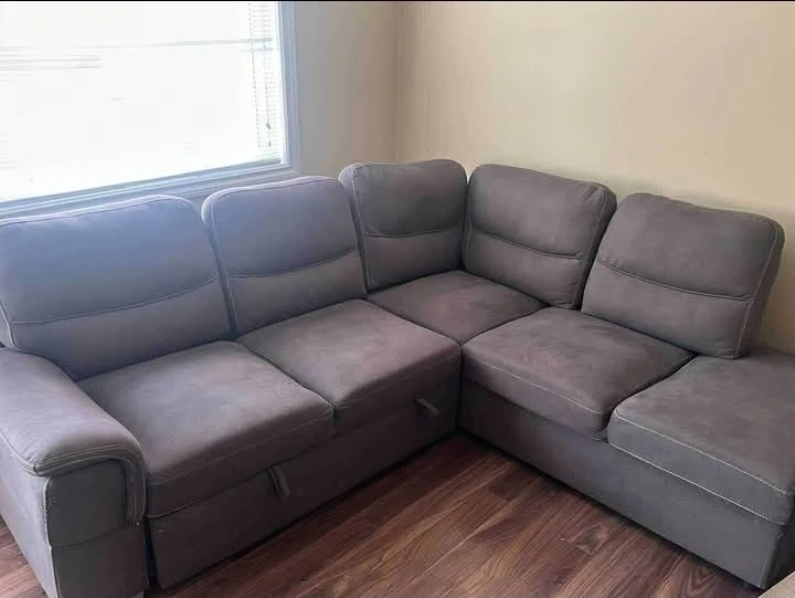 Selling a comfy brown sectional sofa. It's in great shape and ready for a new living room! The sectional design offers plenty of seating and a versatile layout to fit your space perfectly