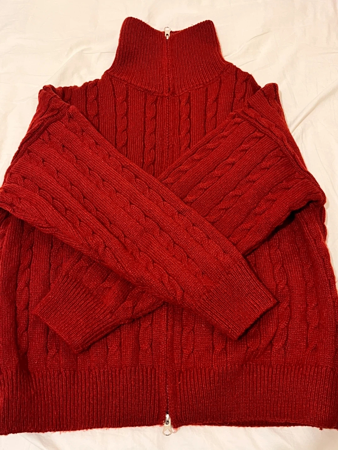 Red Cable Knit Zip-Up Cardigan
