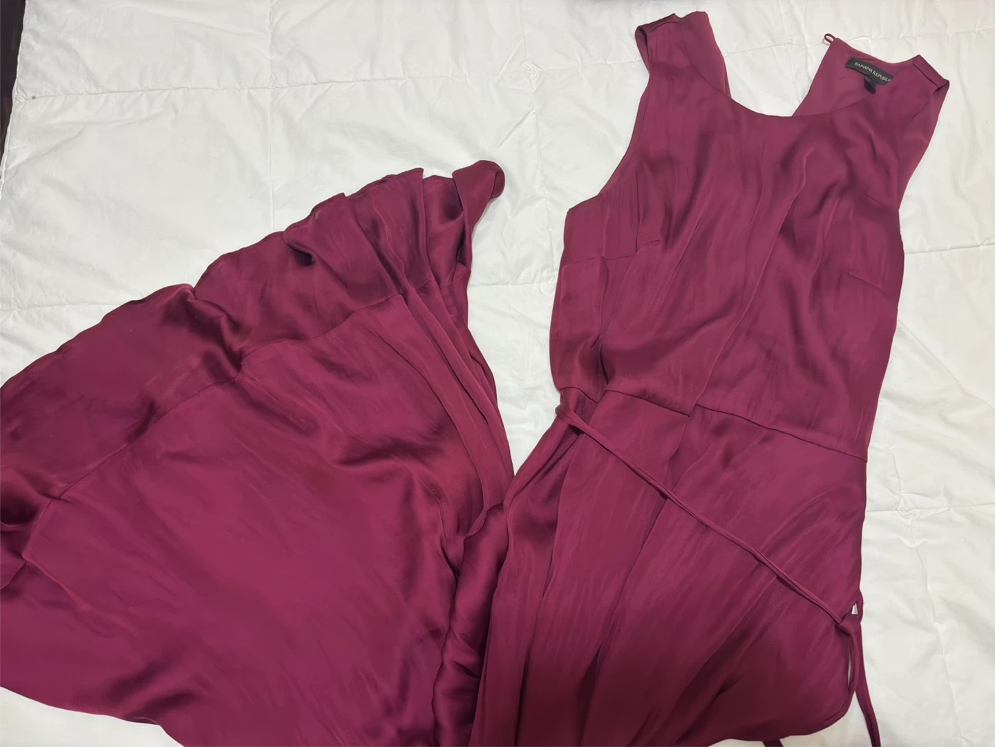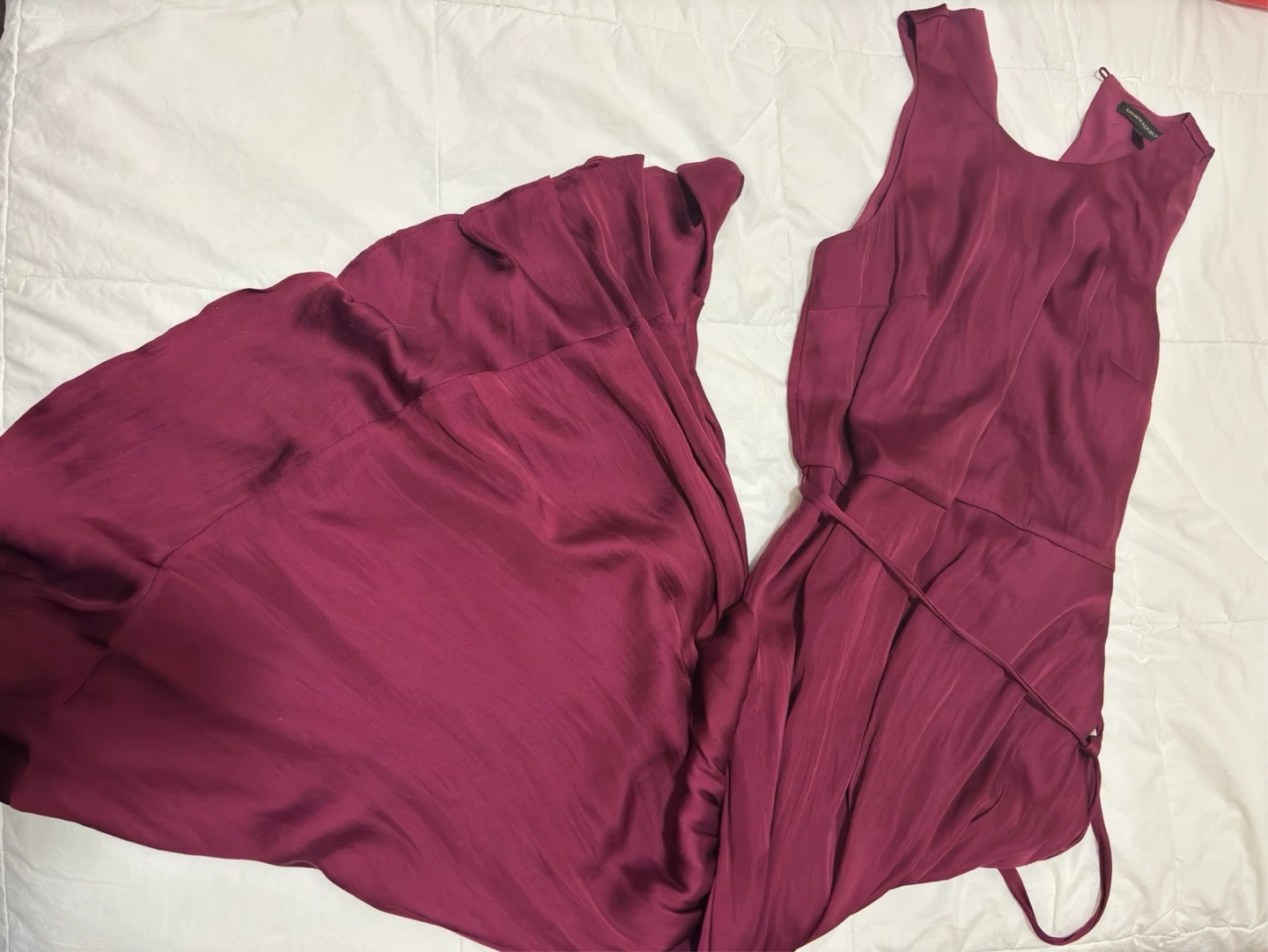 Selling a beautiful Banana Republic maxi dress in a rich burgundy colour. It's a size 10 and made from a silky material that drapes nicely. Perfect for a special occasion or dressing up for a night out!