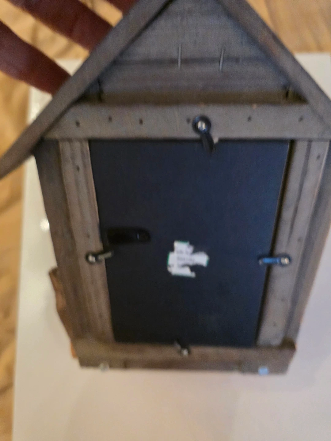 The frame has an easel back for tabletop display and a sawtooth metal hanger for wall display.