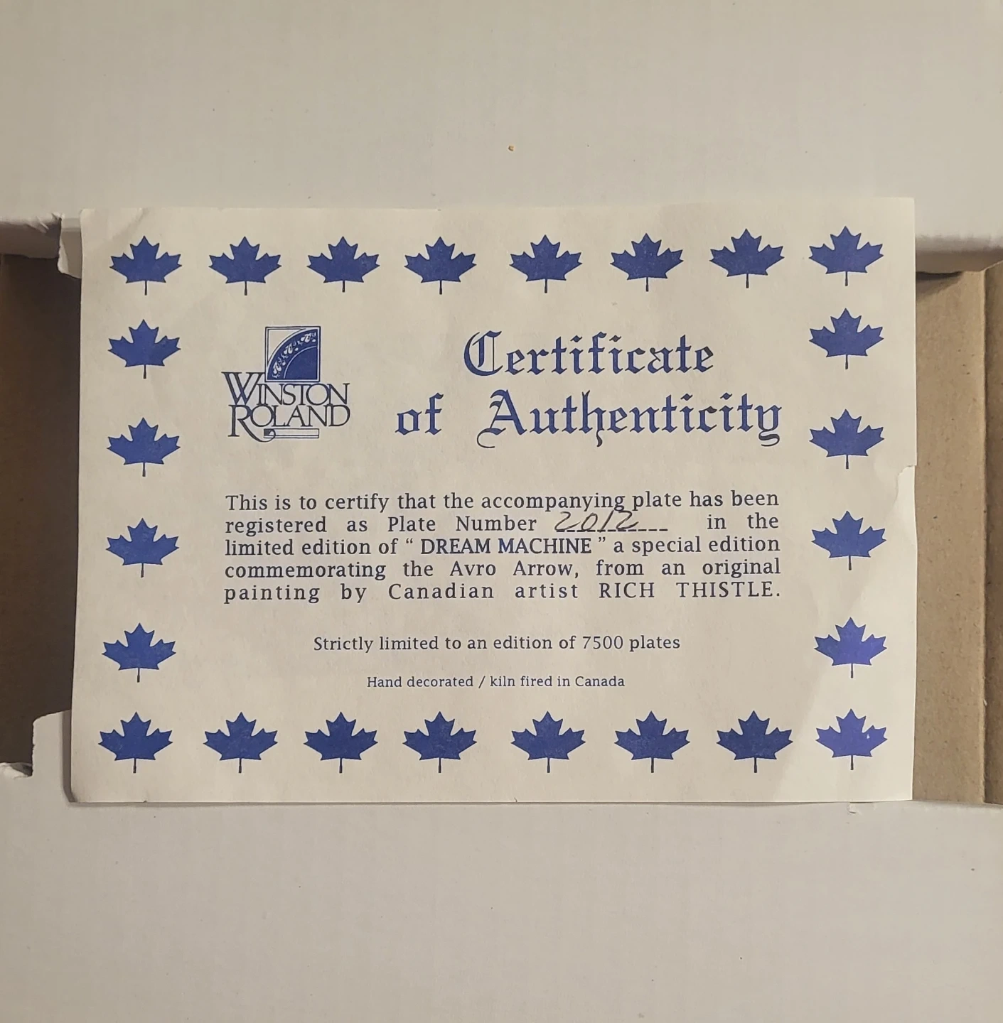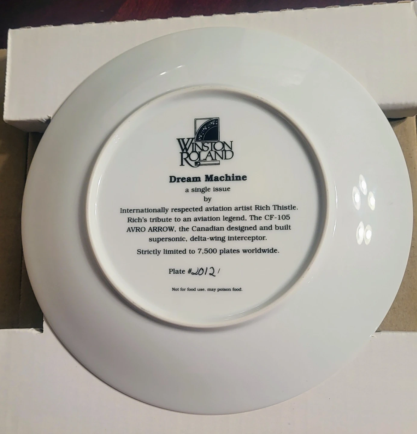 🥕 Selling a Winston Roland 'Dream Machine' collector's plate. This plate is a tribute to the CF-105 AVRO Arrow, designed by Canadian artist Rich Thistle. It's strictly limited to 7,500 plates worldwide, and this one is plate #2012! NEW! Comes with the original box and a Certificate of Authenticity