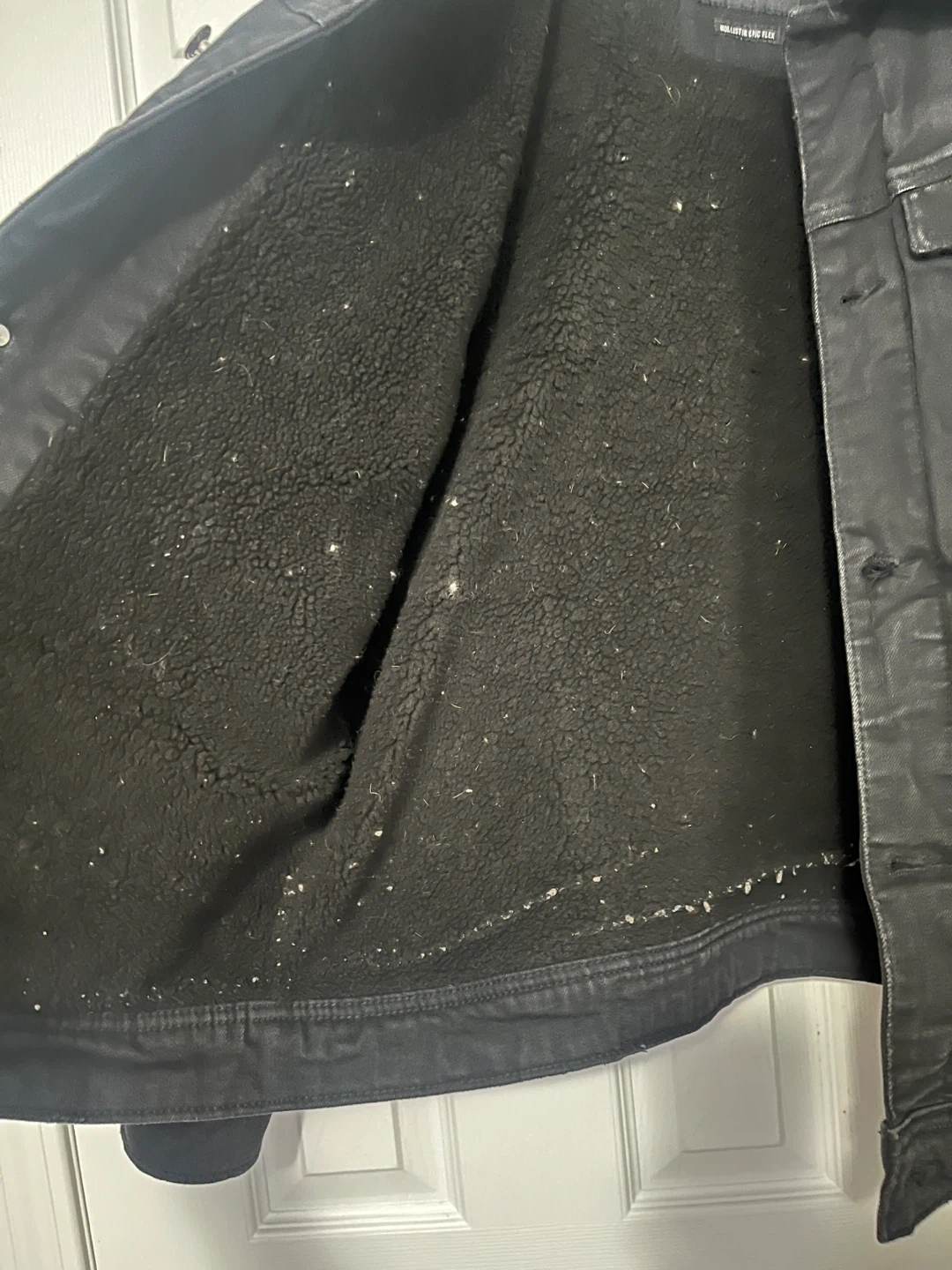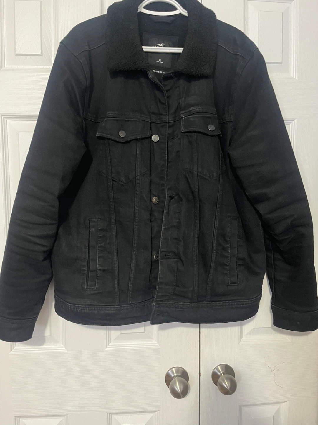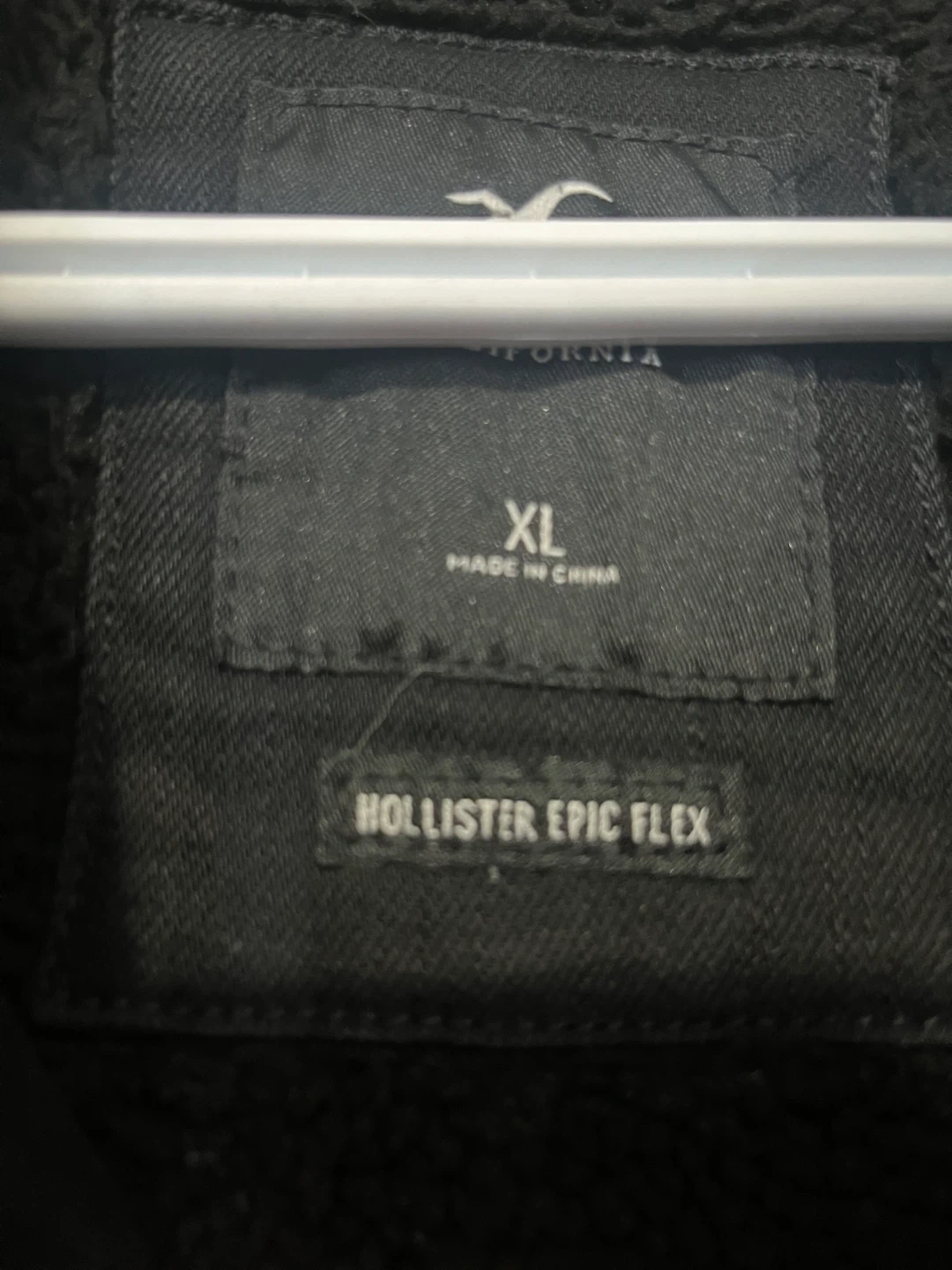 Selling a Hollister Epic Flex jacket in size XL. It's a black jacket with a sherpa lining and collar. Great for staying warm and stylish!