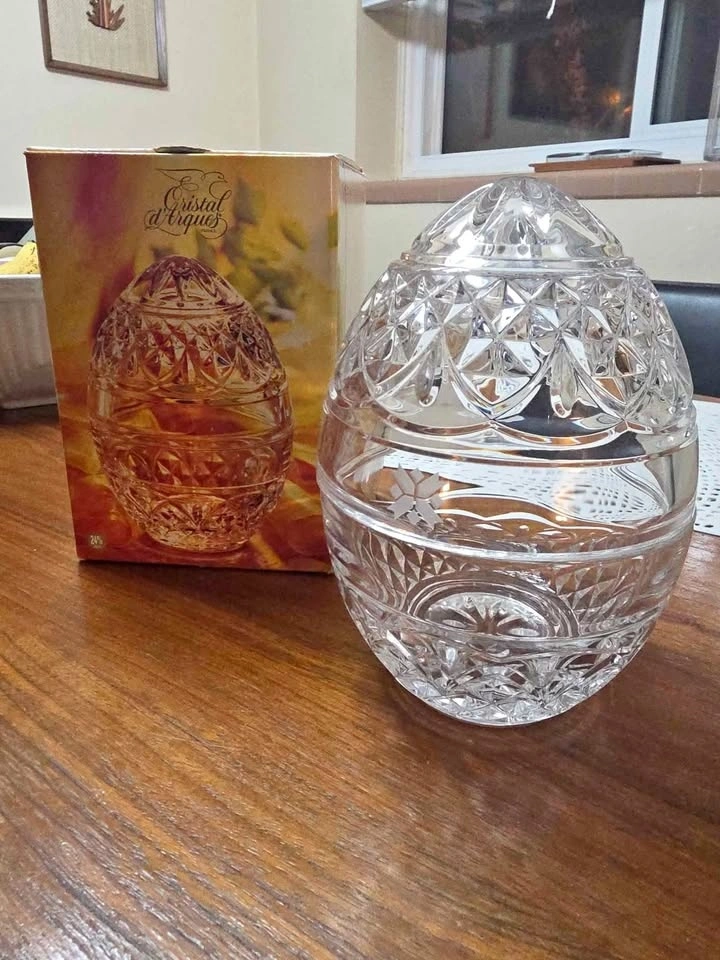 Large Vintage Cristal d'Arques lead crystal egg trinket