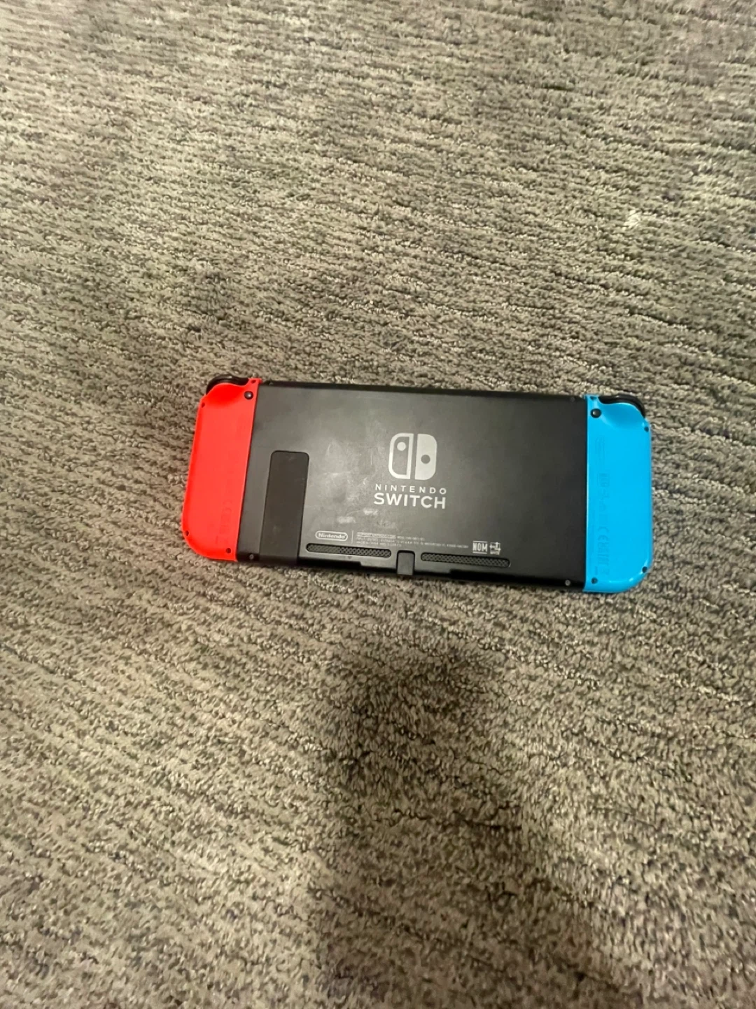 Selling a Nintendo Switch console in mid condition. Screen protector is cracked not the actual screen and needs a factory reset so you have to take it somewhere for a reset. Red joy con is broken have doc but no cords.