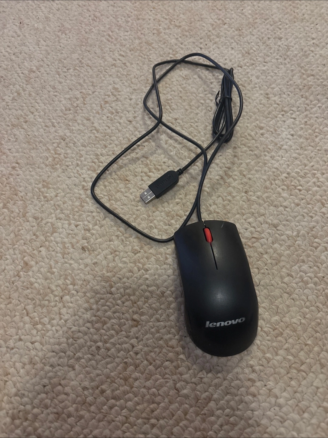 Selling a Lenovo black USB optical mouse. It's in great condition and ready for a new user! Perfect for everyday use with your computer or laptop