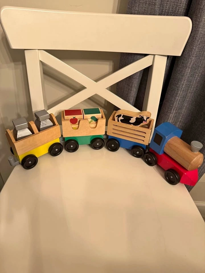 Buy & SellMelissa and Doug wood farm trainMelissa and Doug wood farm train$5Melissa and Doug wood farm train. One piece has been glued back in otherwise in excellent condition.WHERE TO MEETHomeView MapSELLERKateWilloughby211 review0 chats·0 favorites·3 viewsSEND CHAT TO SELLERHi Kate! I’m interested in your listing.Hi Kate! I’m interested in your listing.Get the Karrot app to chatSign In to chat