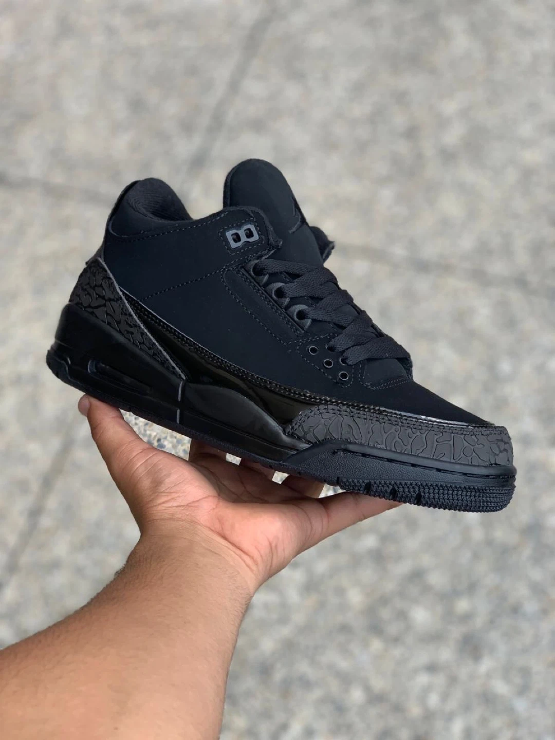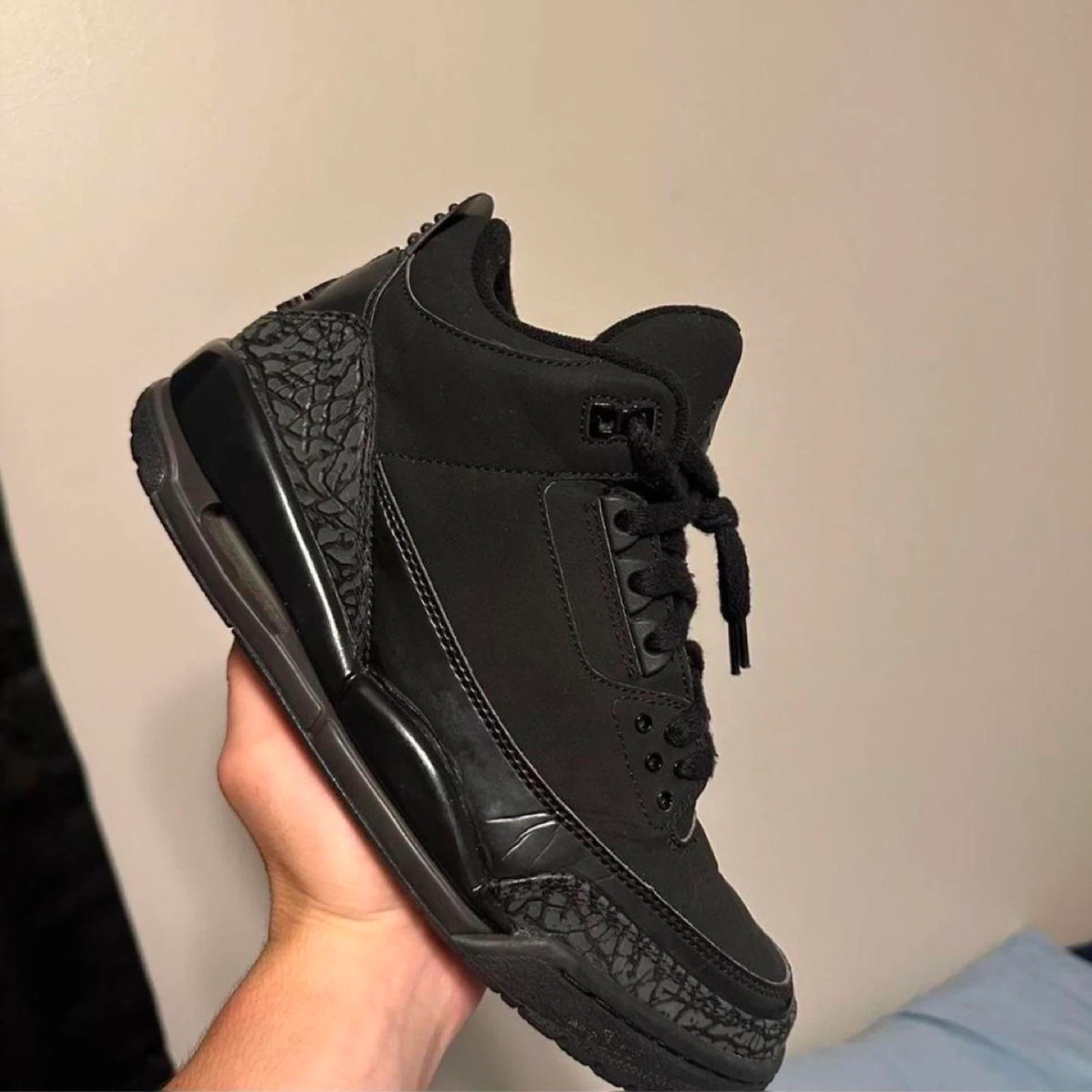 Selling a pair of Jordan 3 Retro Black Cat sneakers in size 10. These are in great condition and feature a sleek, all-black design with the classic elephant print detailing. Perfect for adding a stylish touch to your sneaker collection!