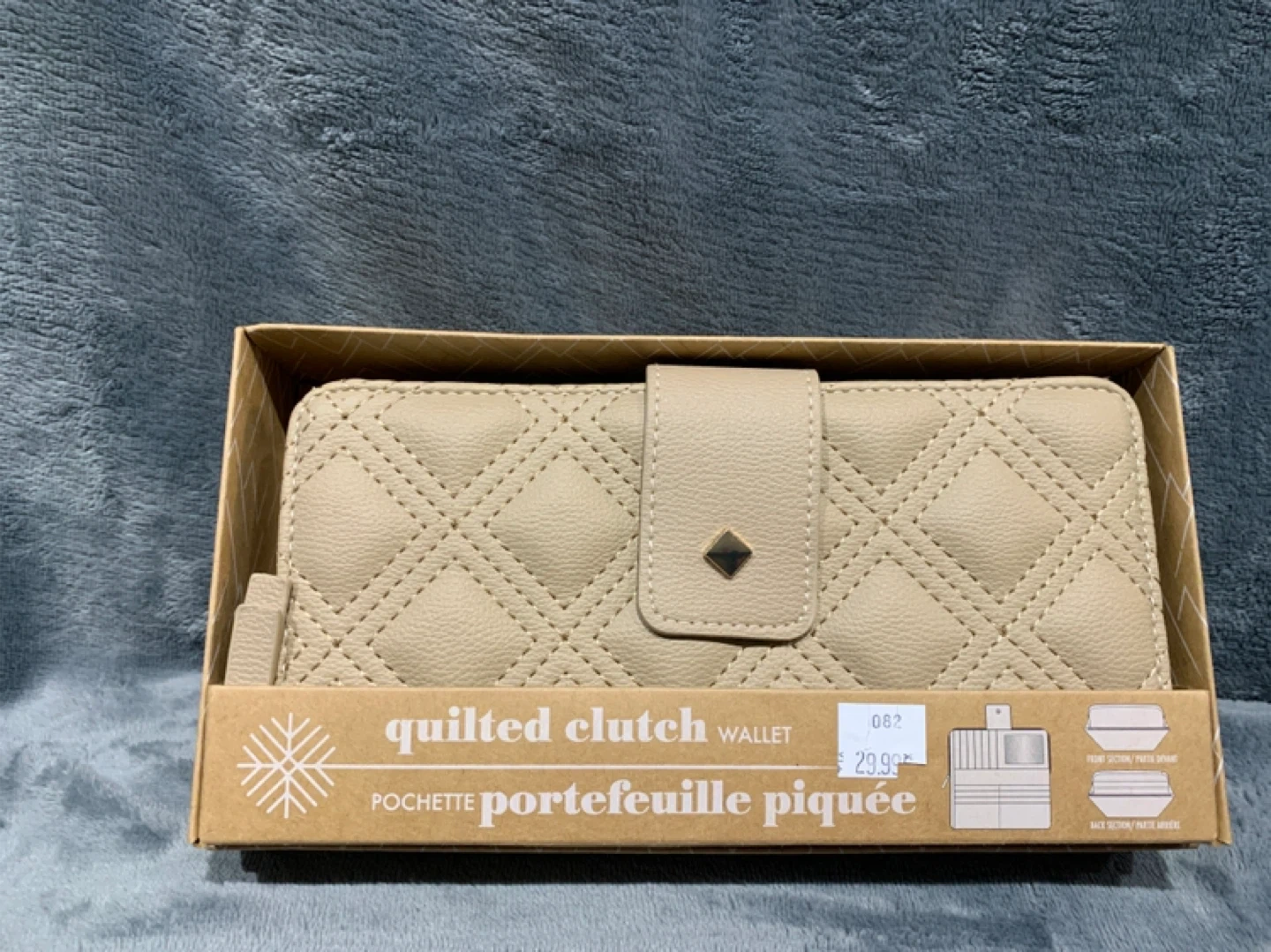 This is a brand new quilted clutch wallet still in its original box! It's a stylish and practical accessory to keep your essentials organized.