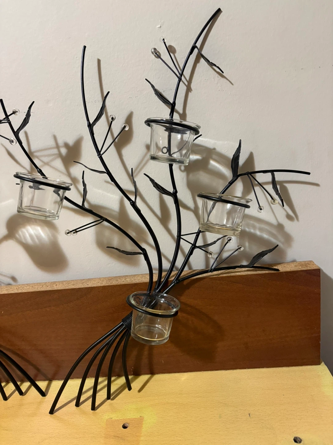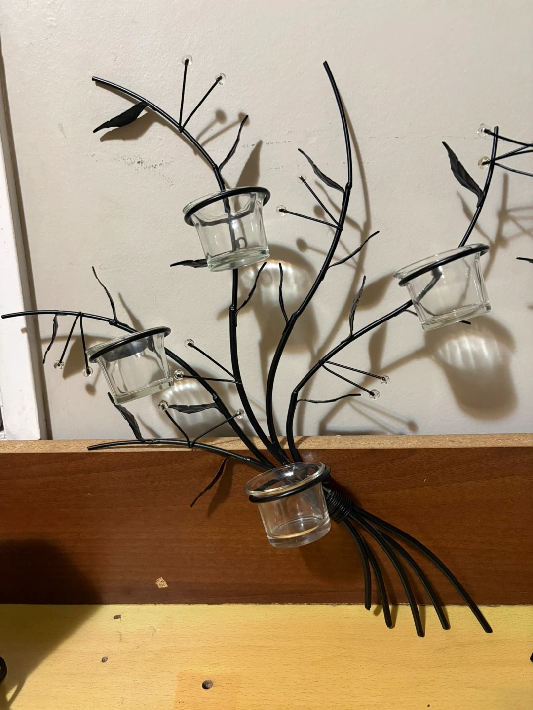 Selling a unique metal branch candle holder! It's a lovely piece to add a touch of elegance to any room. Features glass candle cups.