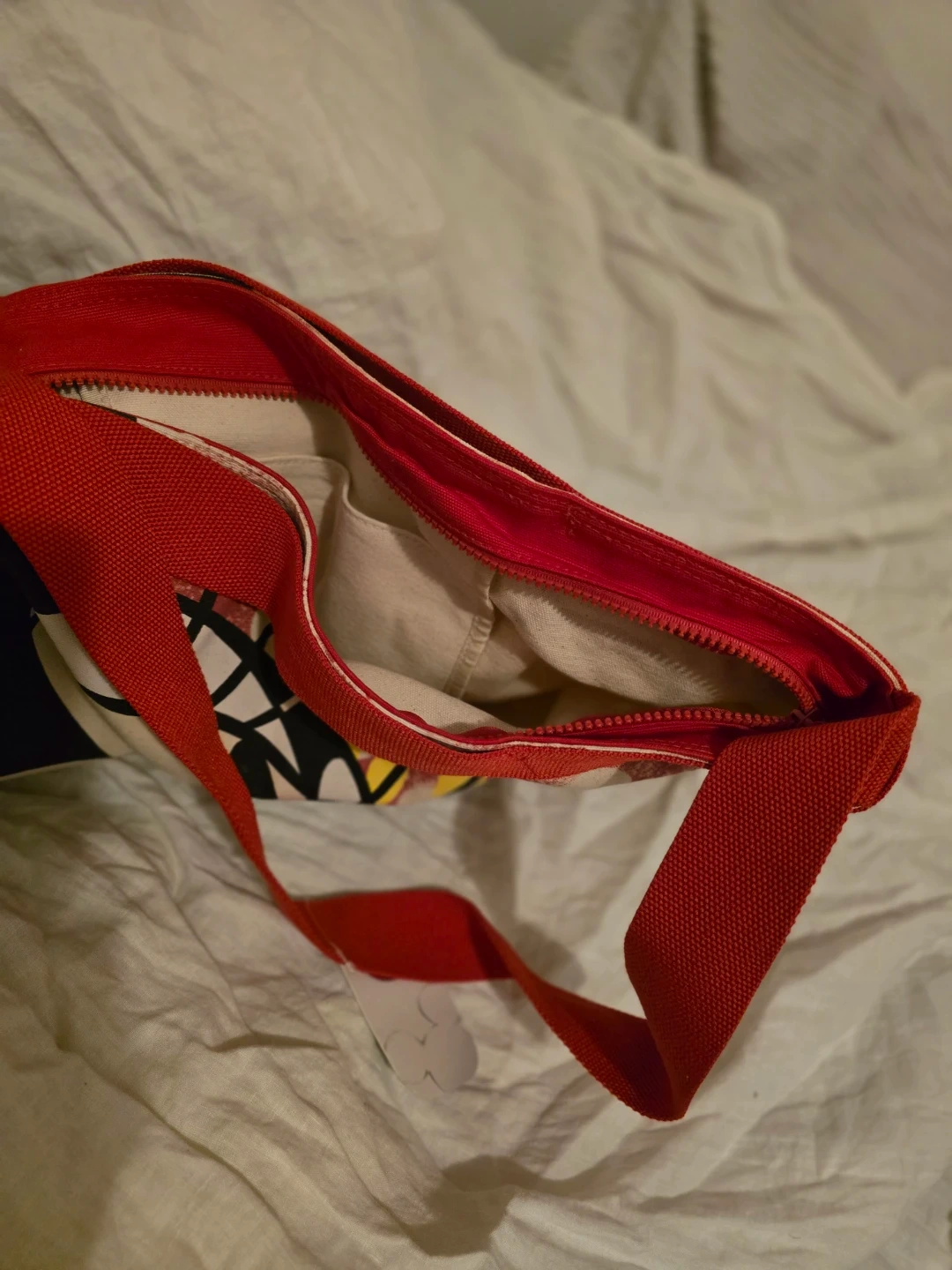 Selling a cute Disney Mickey Mouse tote bag! It's in great condition and perfect for carrying your essentials. The bag features a fun Mickey Mouse design with red accents and a convenient zipper closure. From Japan Disney.