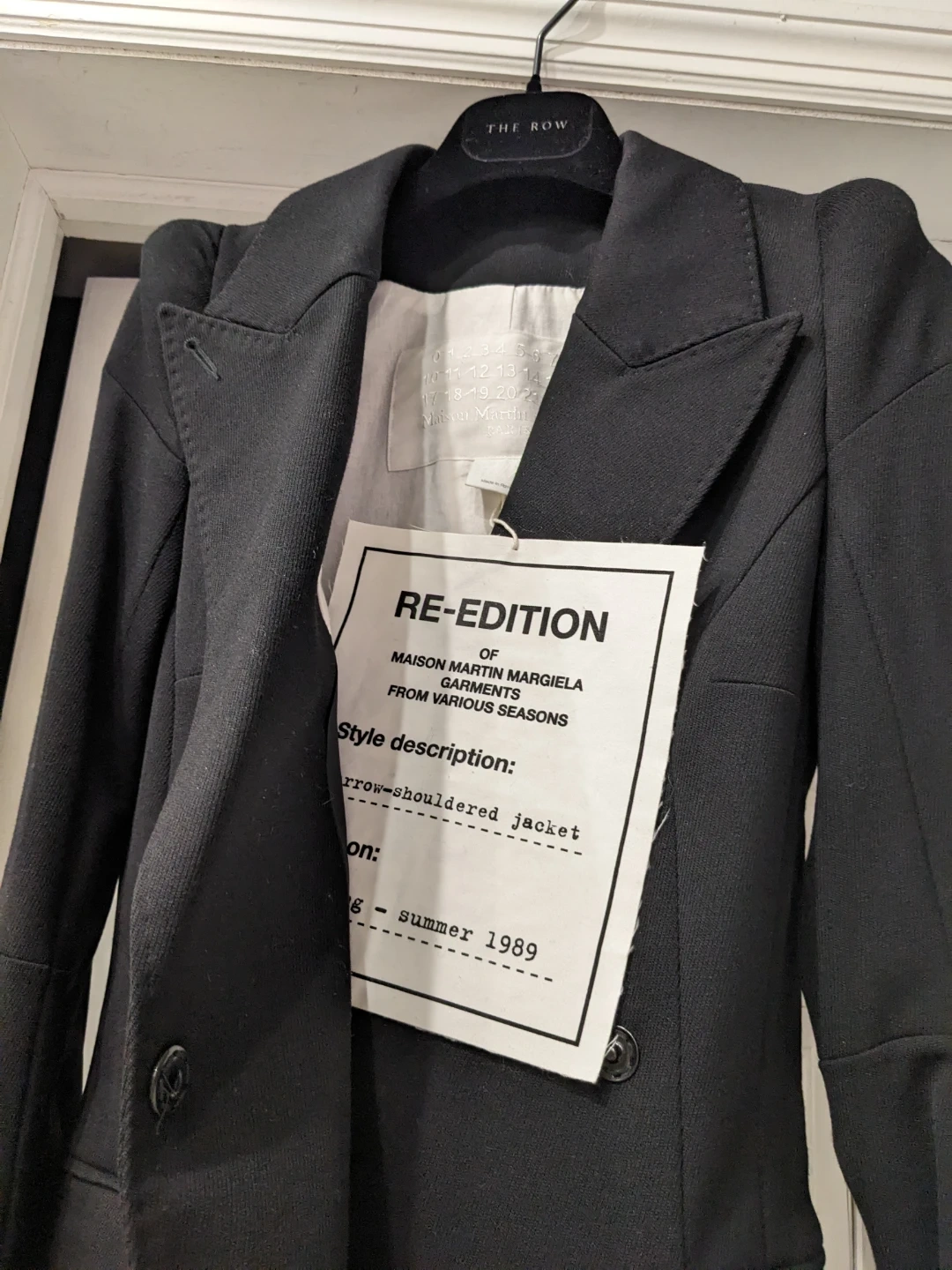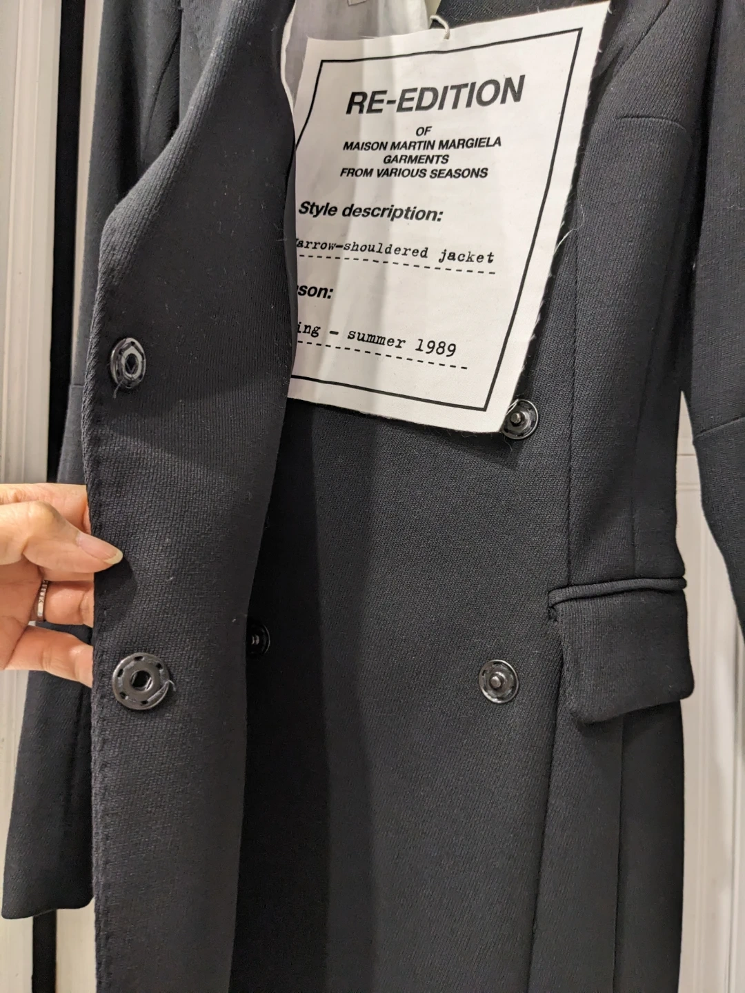 Selling a Maison Martin Margiela Re-Edition Garments jacket. The style description is a narrow-shouldered jacket from the summer of 1989.