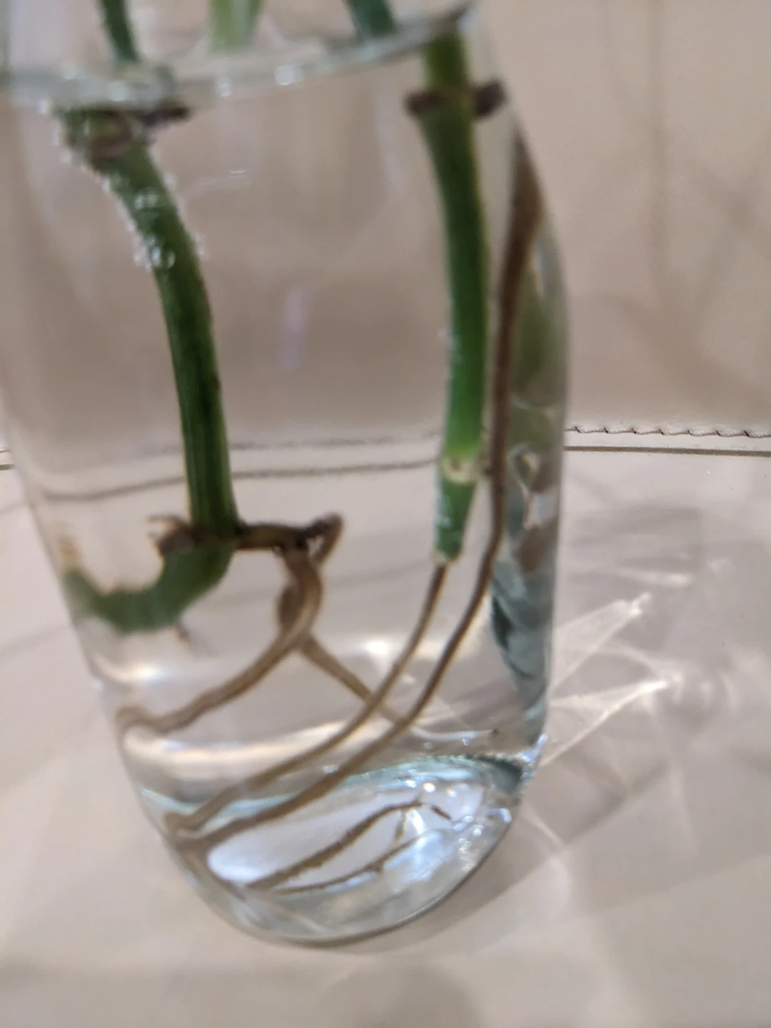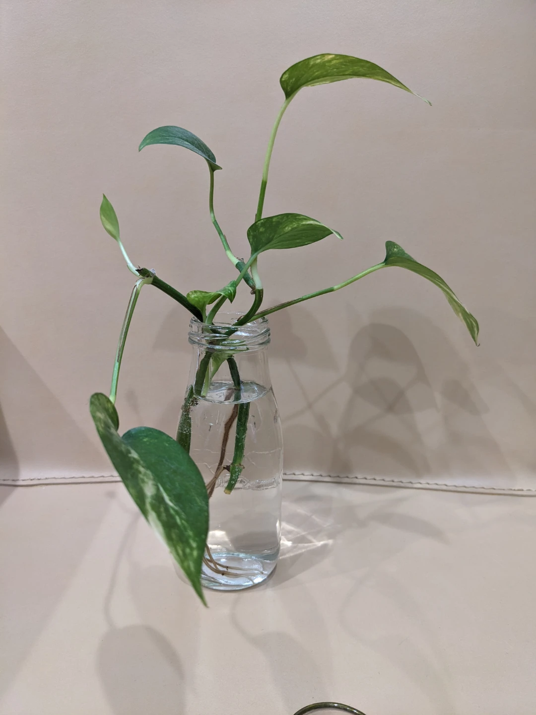 I have pothos plant cuttings in water, ready to be planted! They are actively growing roots and will make a great addition to your home