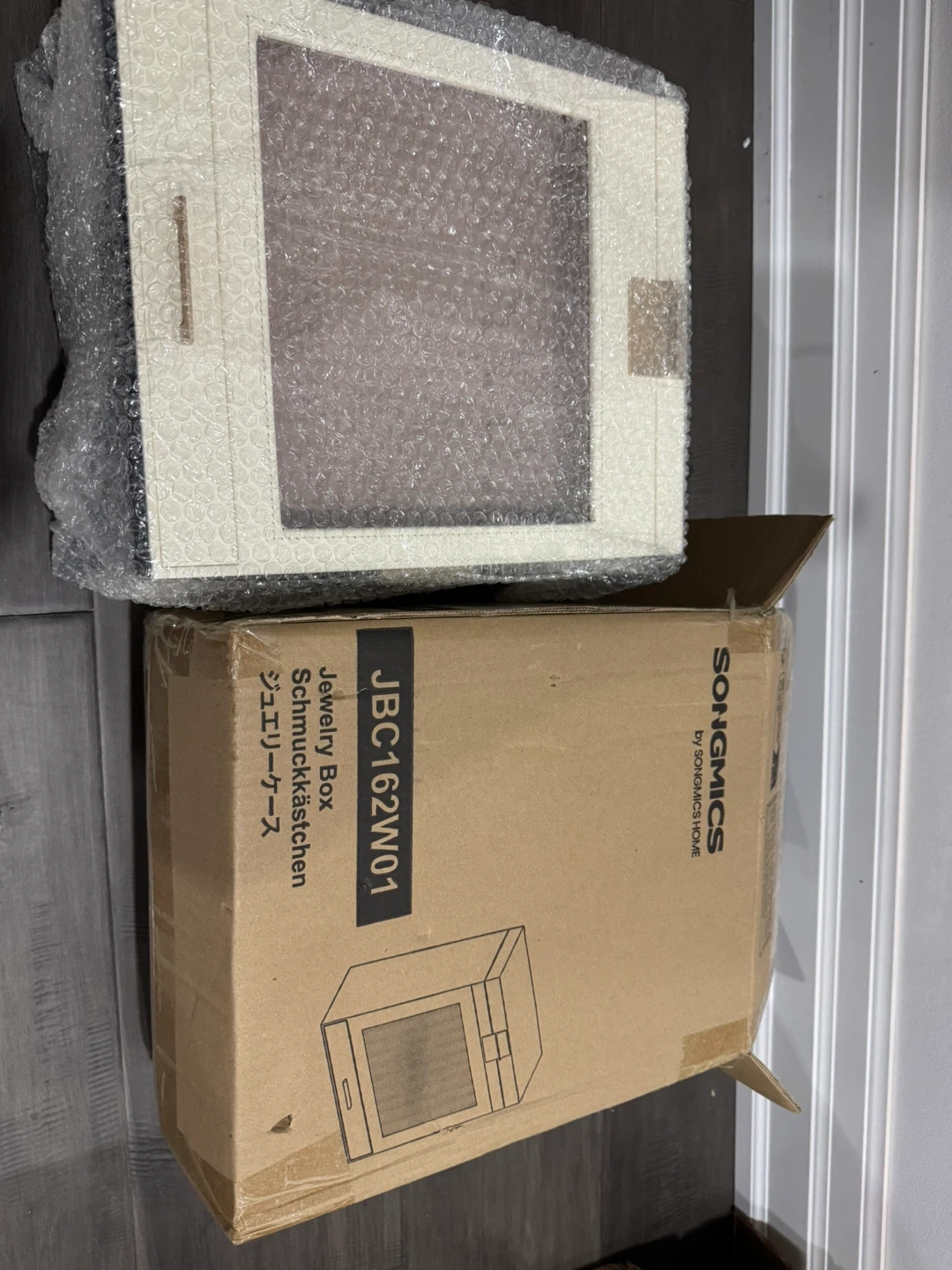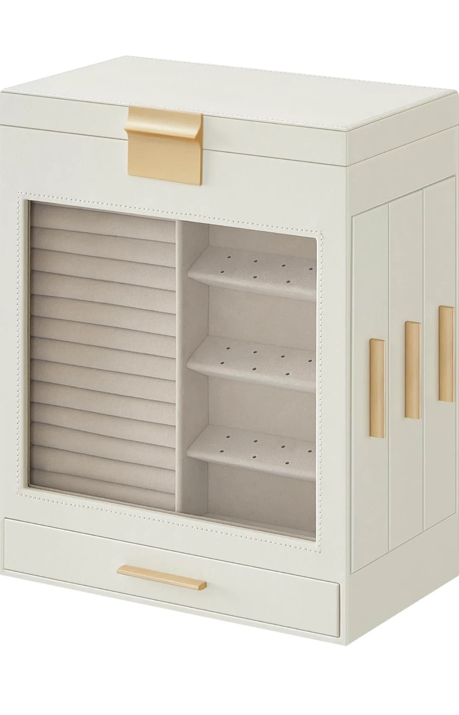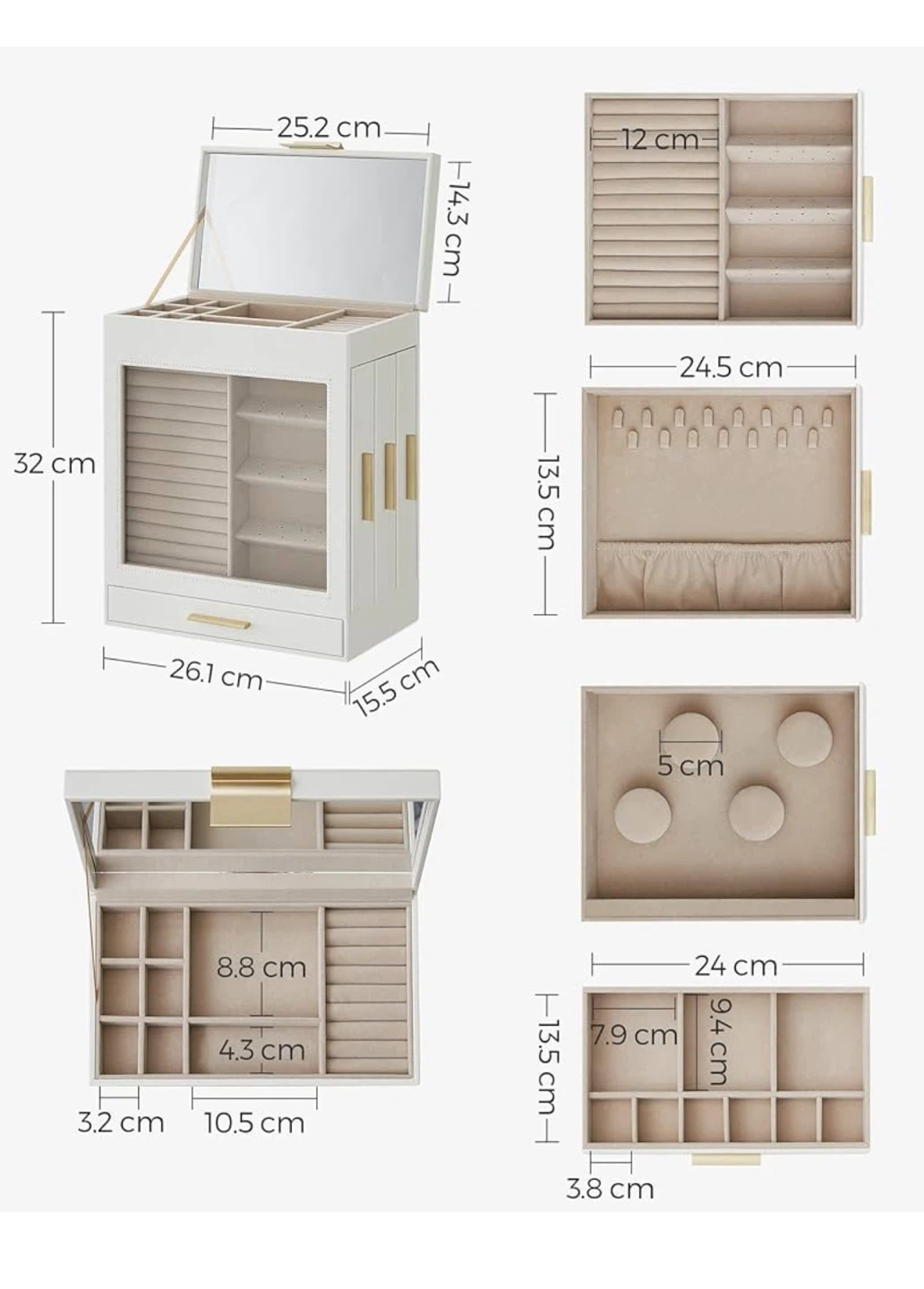 Brand new SONGMICS Jewelry Box, 5-Layer Jewelry Organizer, 6.1 x 10.3 x 12.6 Inches, Cloud White and Metallic Gold UJBC162W01