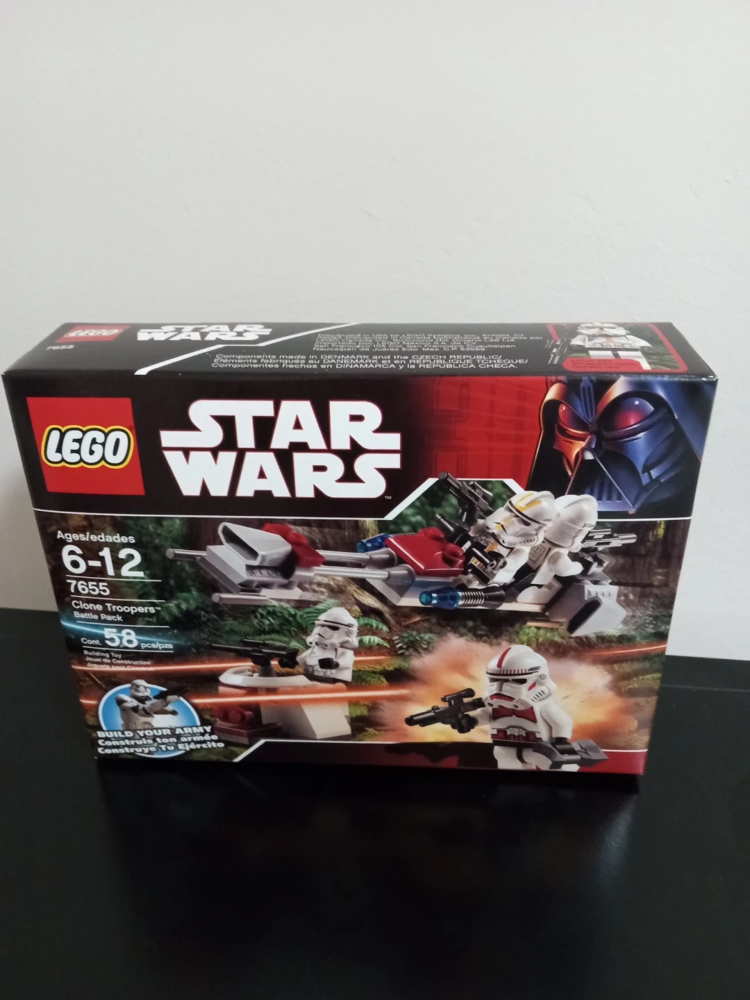 Selling a LEGO Star Wars set, the 7655 Clone Troopers battle pack! This set is recommended for ages 6-12 and includes 58 pieces to build your army. Never opened. Released 2007. Has 4 mini-figures included in box