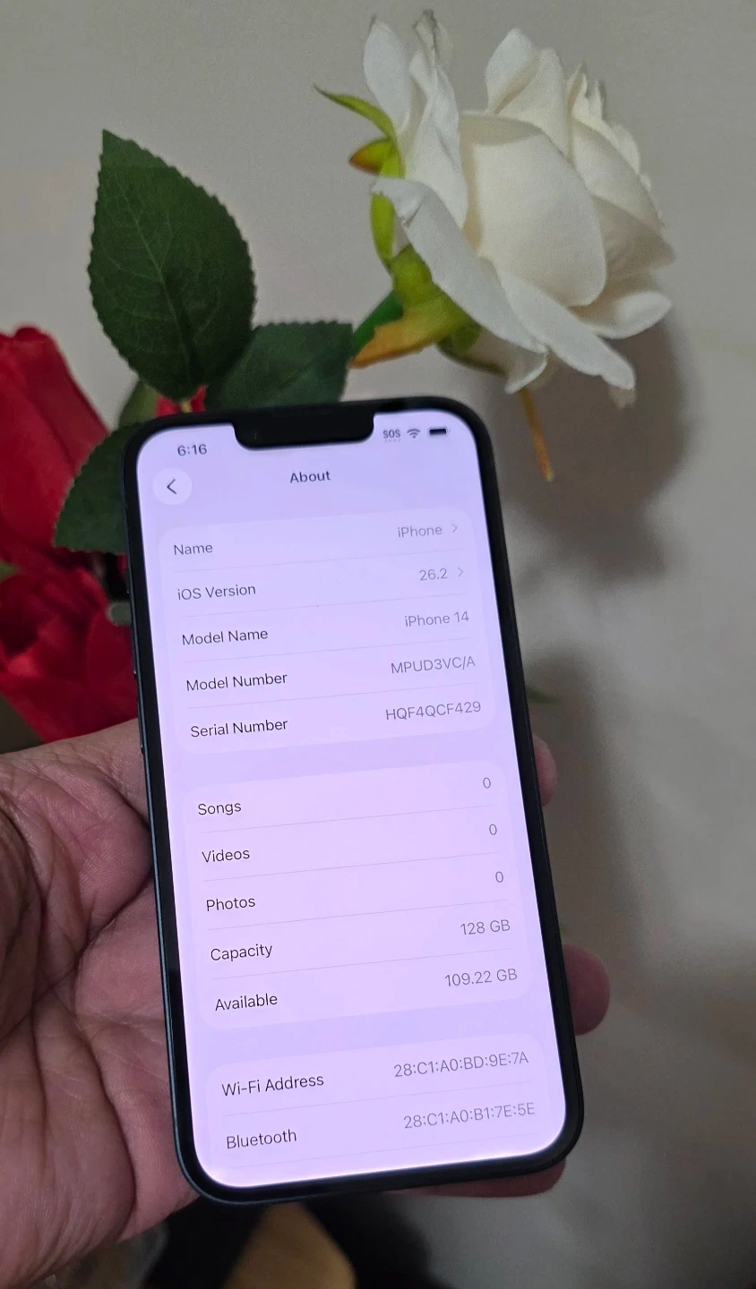 Selling an iPhone 14 used with 128GB of storage. & charger cable, It's in excellent condition like new, everything working, all network working, battery health very good 89% more than 9 hours u can use, and ready for a new owner! If anyone interest knock me will send you number n address intersection :