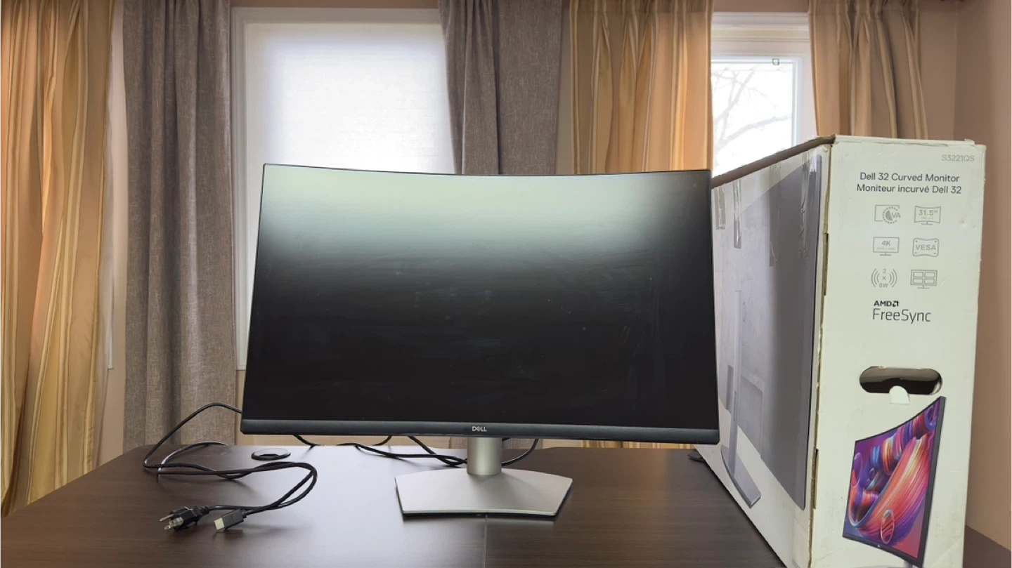 Selling a Dell S3221QS 32-inch curved monitor! It offers expansive views in stunning 4K resolution. The curved 1800R screen expands your field of vision, providing a wrap-around view for an immersive movie experience. It also features premium sound with built-in dual 5W speakers professionally-tuned by Waves MaxxAudio. The three-sided ultrathin bezel design lets you enjoy incredible clarity and fine detail with 4 times the resolution of Full HD. It also comes with the box