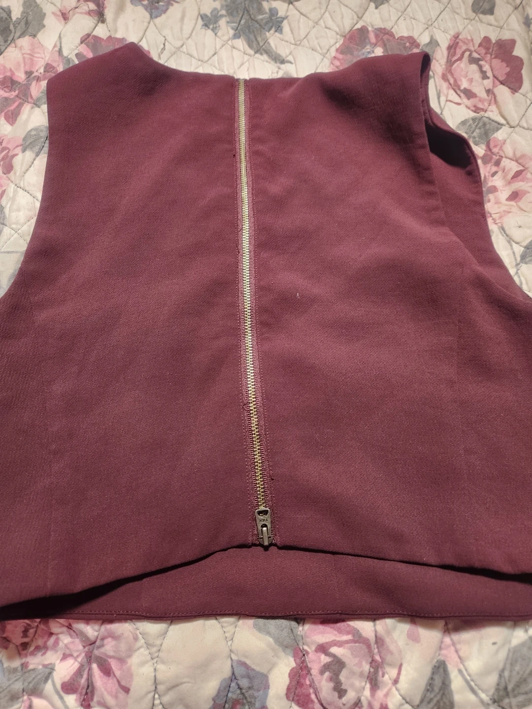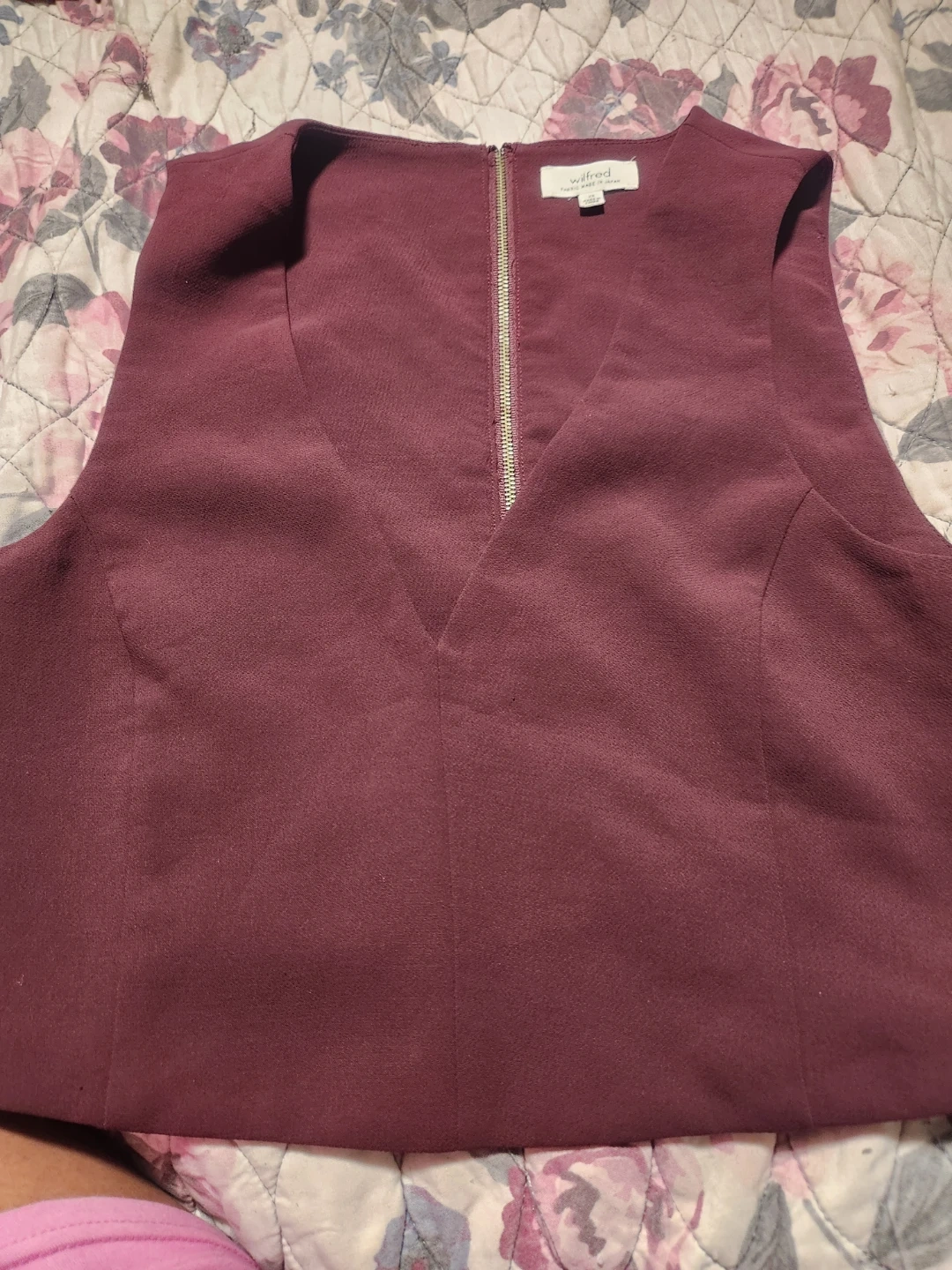 Selling a Wilfred Free sleeveless top in a lovely burgundy colour! It features a zipper down the back and is a size small. A great addition to any wardrobe! Price is firm plz. Pick up midland and Danforth or 401 bay street or stc mall