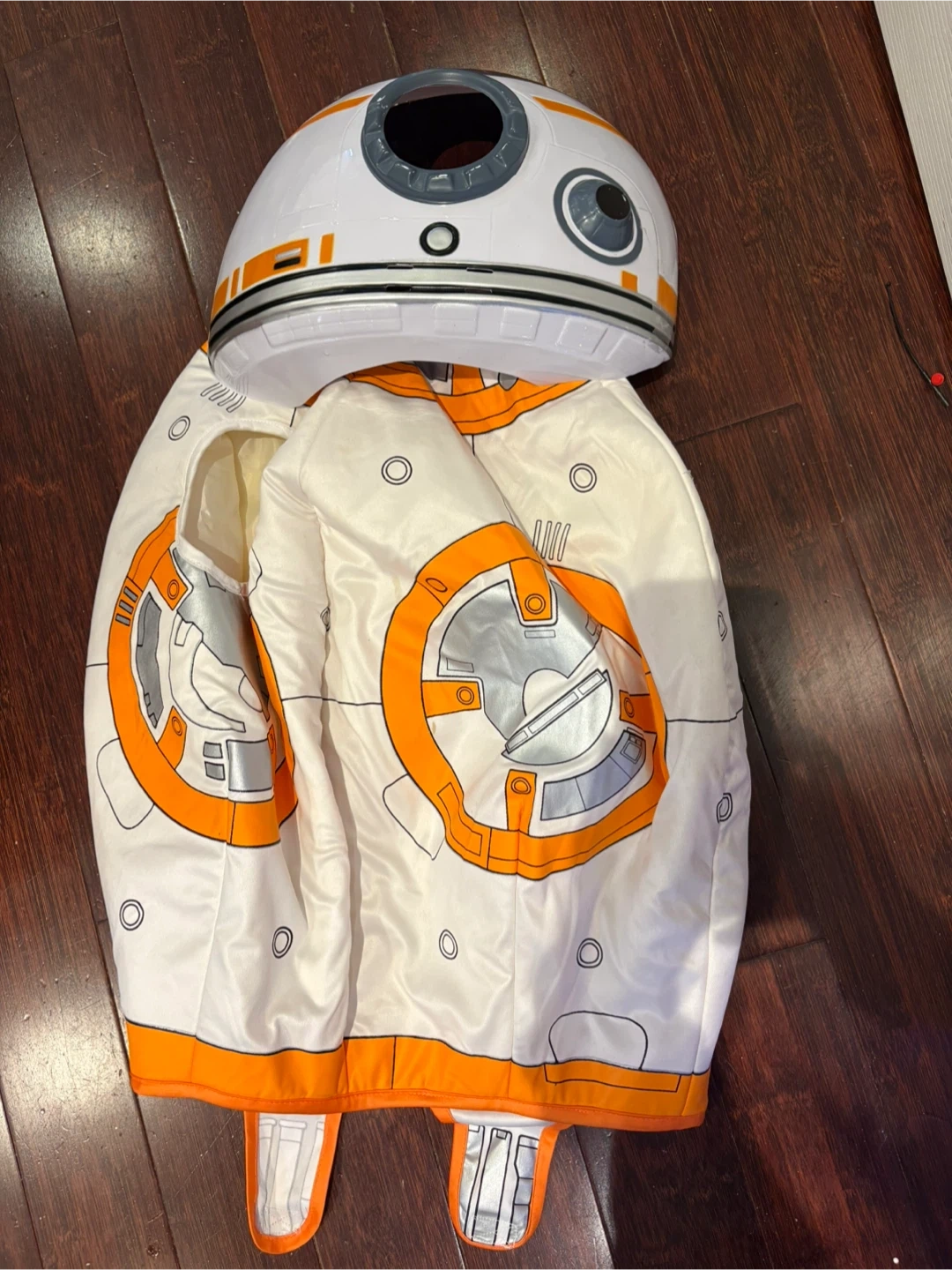 Giving a Star Wars BB-8 costume for a child. It's in good condition and ready for a new Star Wars adventure. Mask just has some wear as shown, otherwise in good condition.