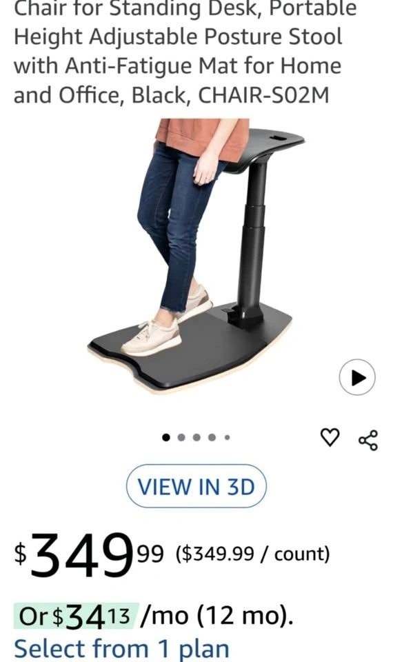 Brand new in the box VIVO Ergonomic Leaning Perch Chair for Standing Desk, Portable Height Adjustable Posture Stool with Anti-Fatigue Mat for Home and Office, Black, CHAIR-S02M