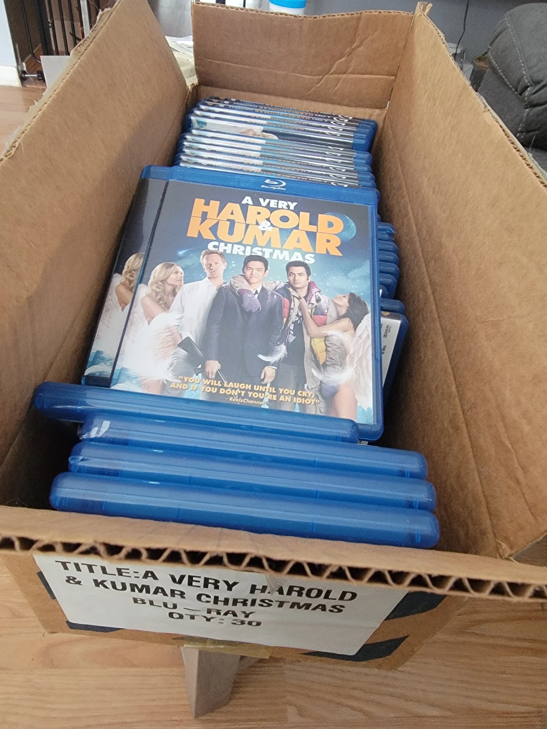 1 / 11 / 1Buy & Sell29 copies of A Very Harold & Kumar Christmas Blu-Ray used29 copies of A Very Harold & Kumar Christmas Blu-Ray used$30Selling a box of A Very Harold & Kumar Christmas Blu-Ray discs. Quantity 29. Open condition WHERE TO MEETCheck LocationView MapSELLERAmandaNorthgate482 reviews0 chats·0 favorites·17 viewsSEND CHAT TO SELLERHi Amanda! I’m interested in your listing.Hi Amanda! I’m interested in your listing.Get the Karrot app to chatSign In to chat