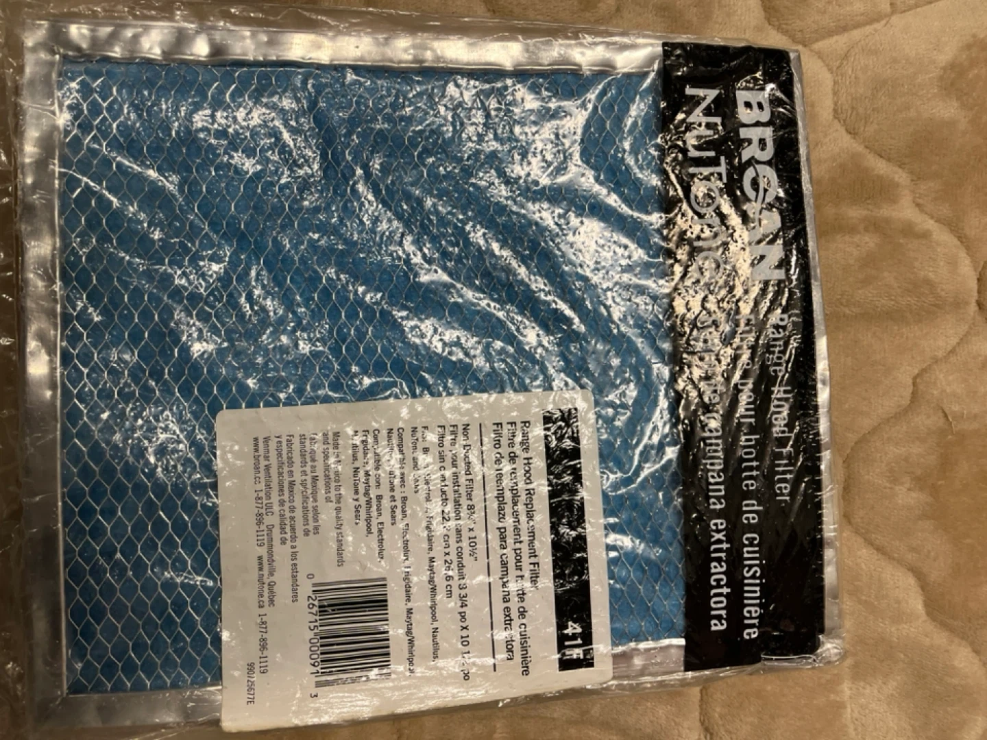 Selling a new Broan Nutone range hood filter, model 41F. It's a replacement filter designed for range hoods to help keep your kitchen air clean. Dimensions are approximately 8 3/4” x 10 1/2”