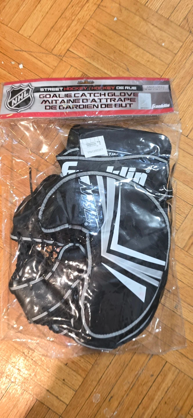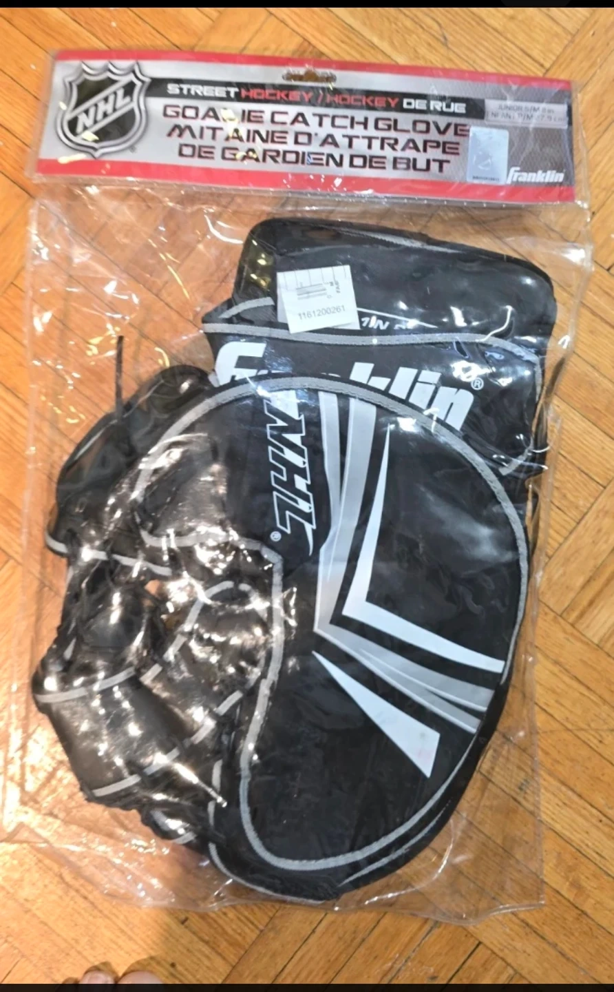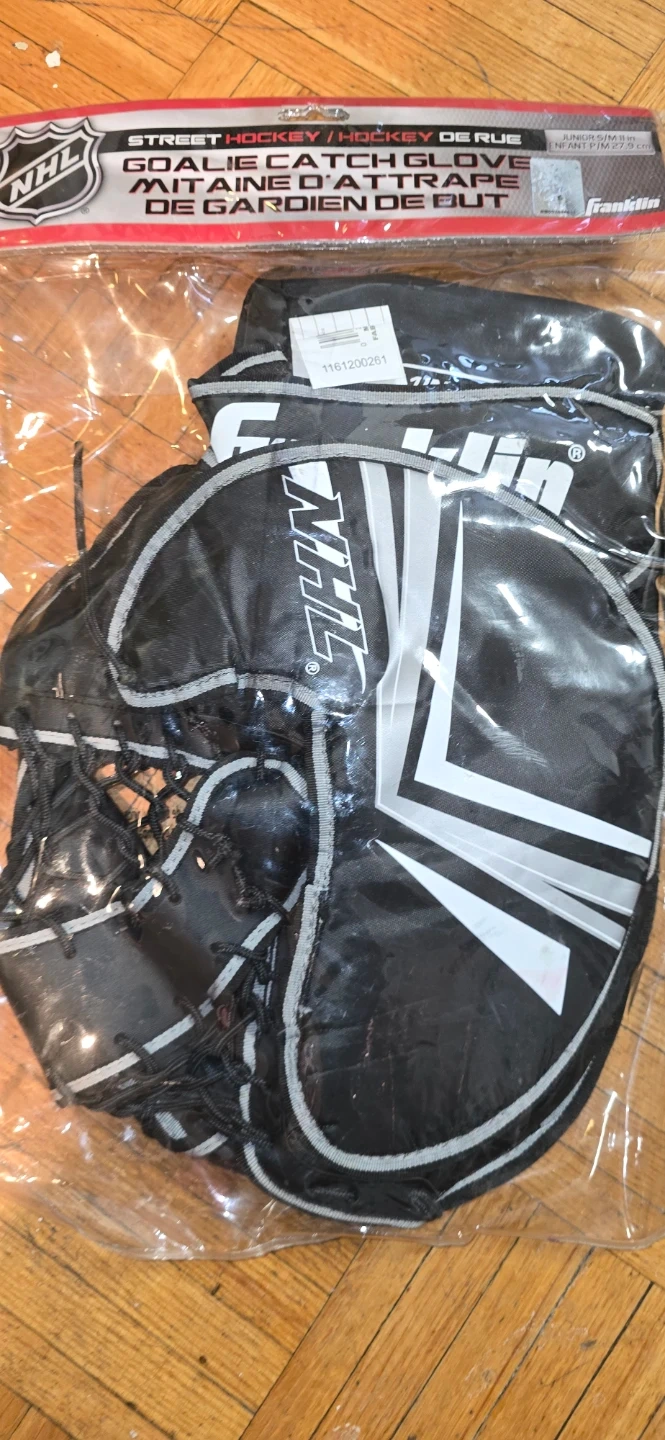Brand new Franklin NHL street hockey goalie catch glove, junior size! This glove is perfect for young hockey enthusiasts looking to practice their goaltending skills. It's designed for street hockey use and provides great protection and comfort.