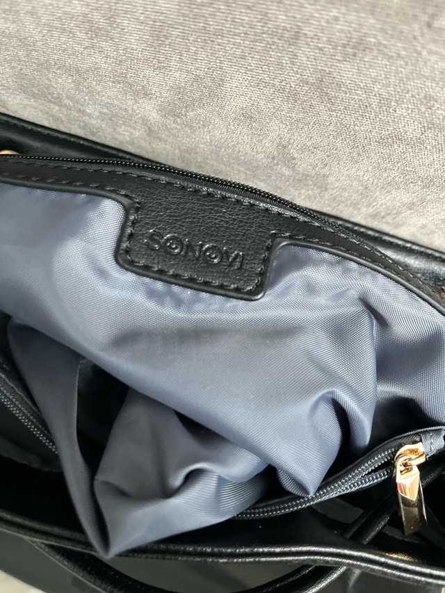 This stylish Sonovi backpack is perfect for everyday use. It's a used item, but still in great condition. Its dimensions are approximately 30cm in height and 30cm in width. Features: * Adjustable straps * Drawstring and magnetic snap closure * Interior zip pocket Looking to declutter my closet, so this backpack needs a new home! I've priced it fairly at $30. If you're seeing this ad, it's still available!