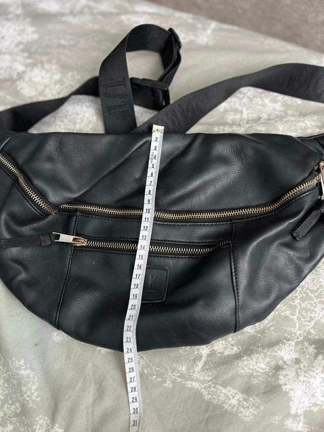 This LK Bennett bum bag is perfect for keeping your essentials close! It's used but in good condition and has a sleek black design with multiple zipper pockets. Measures about 30 cm in length and 20 cm in height.