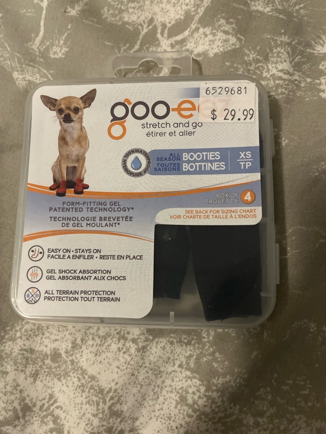 Keep your furry friend's paws protected with these Goo-ee Stretch and Go Booties! These booties are brand new, never been worn, and ready to take on any terrain. They feature a form-fitting gel with patented technology for all-season wear. Additional features include: * Easy to put on and stays in place * Gel shock absorption * All-terrain protection Give your pet the comfort and security they deserve during walks, no matter the weather! If the ad is up, they are available! Payment: Cashless payment, Cash accepted