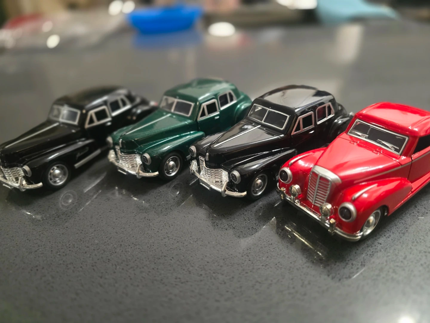 Selling a set of vintage Fleetwood Sedan diecast cars! These miniature cars come in black, green, and red. Perfect for collectors or anyone who appreciates classic car models