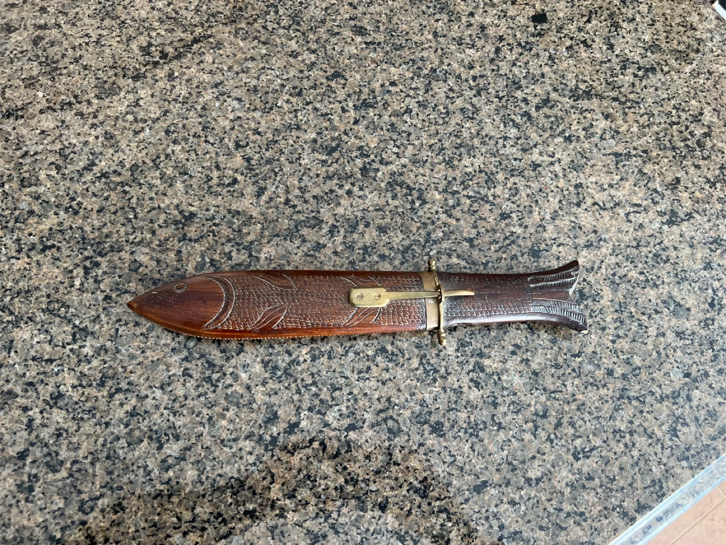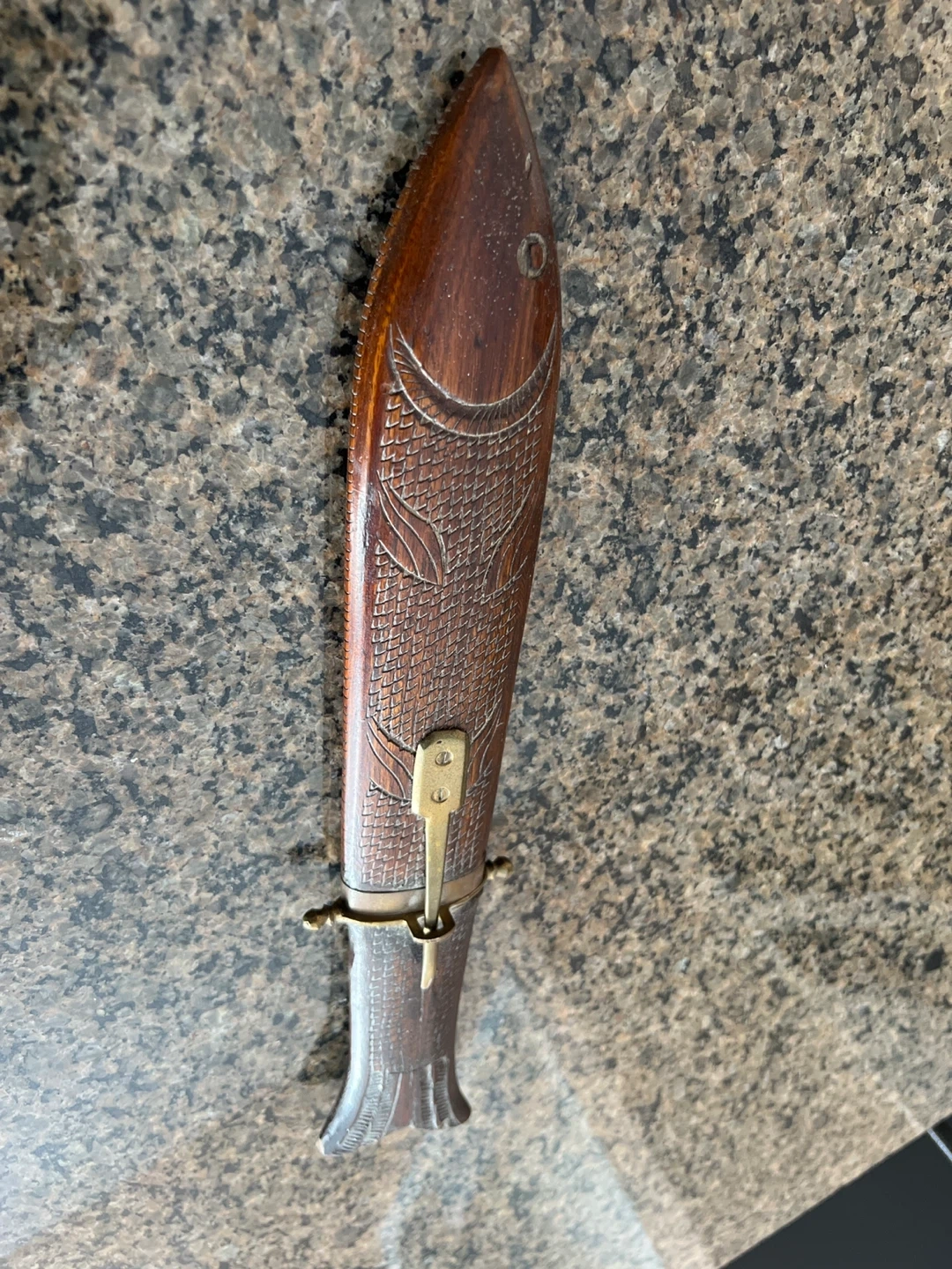Buy & SellVintage Wooden Fish KnifeVintage Wooden Fish Knife$17Unique vintage wooden knife with a fish design! It's in great condition and would be a fun addition to any collectionDimensions14 inches longWHERE TO MEETCheck LocationView MapSELLERverifiedLisetteEast Credit600 reviews2 chats·0 favorites·24 viewsSEND CHAT TO SELLERHi Lisette! I’m interested in your listing.Hi Lisette! I’m interested in your listing.Get the Karrot app to chatSign In to chat