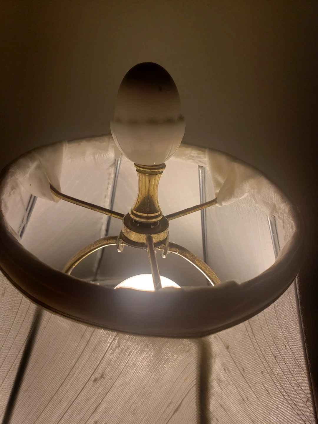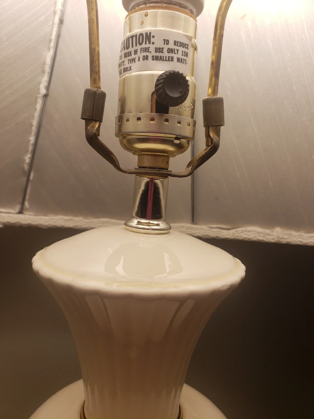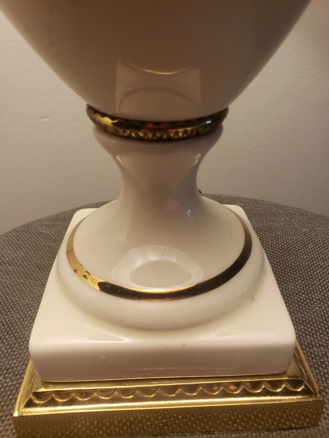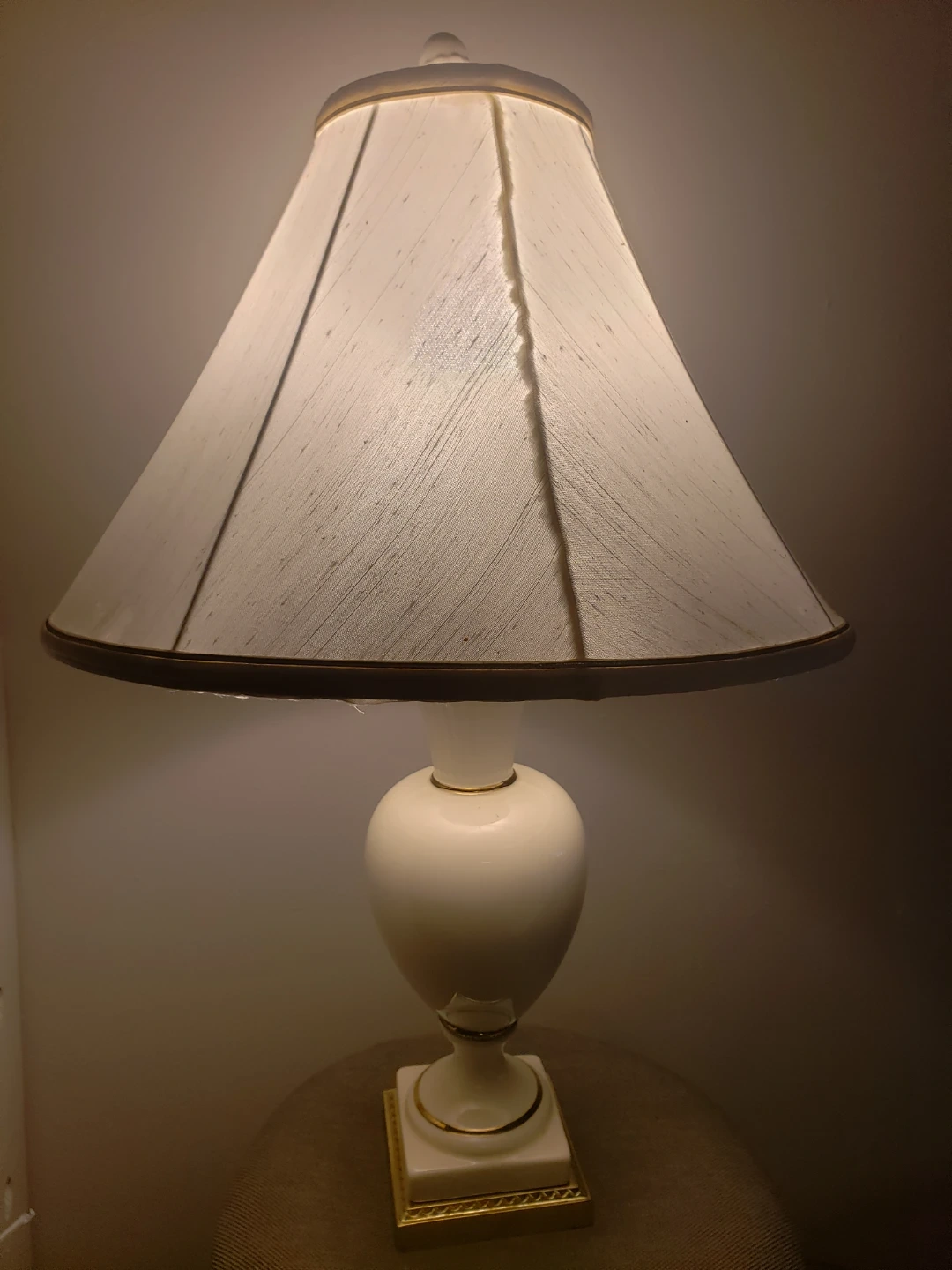 Selling a vintage accent lamp with a white and gold finish. It has a classic design that would look great in any room. The lamp is in good condition and provides a warm, ambient light