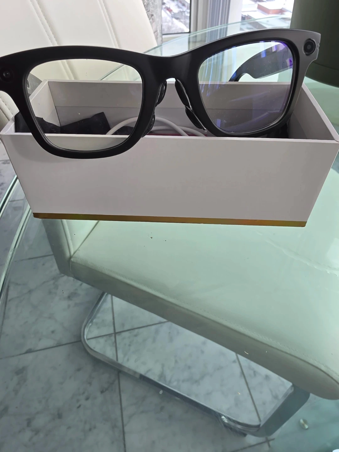 Selling a pair of black smart glasses. They come with the original box and included components. These glasses are lightweight and portable, perfect for capturing moments on the go! Has Bluetooth, translation capabilities, video recording, and.listen to music.on the.go