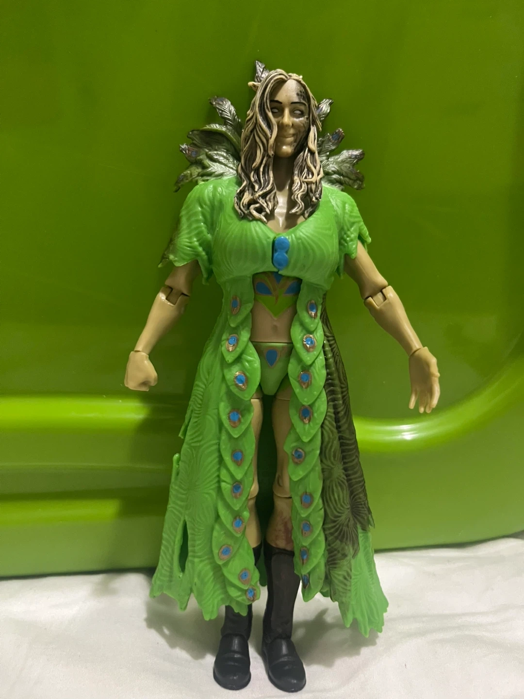 Selling a WWE Elite Collection action figure of Charlotte Flair. The figure is in good condition and features her green peacock-inspired attire. Great for wrestling fans and collectors!