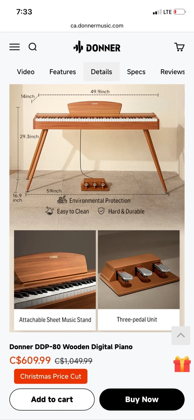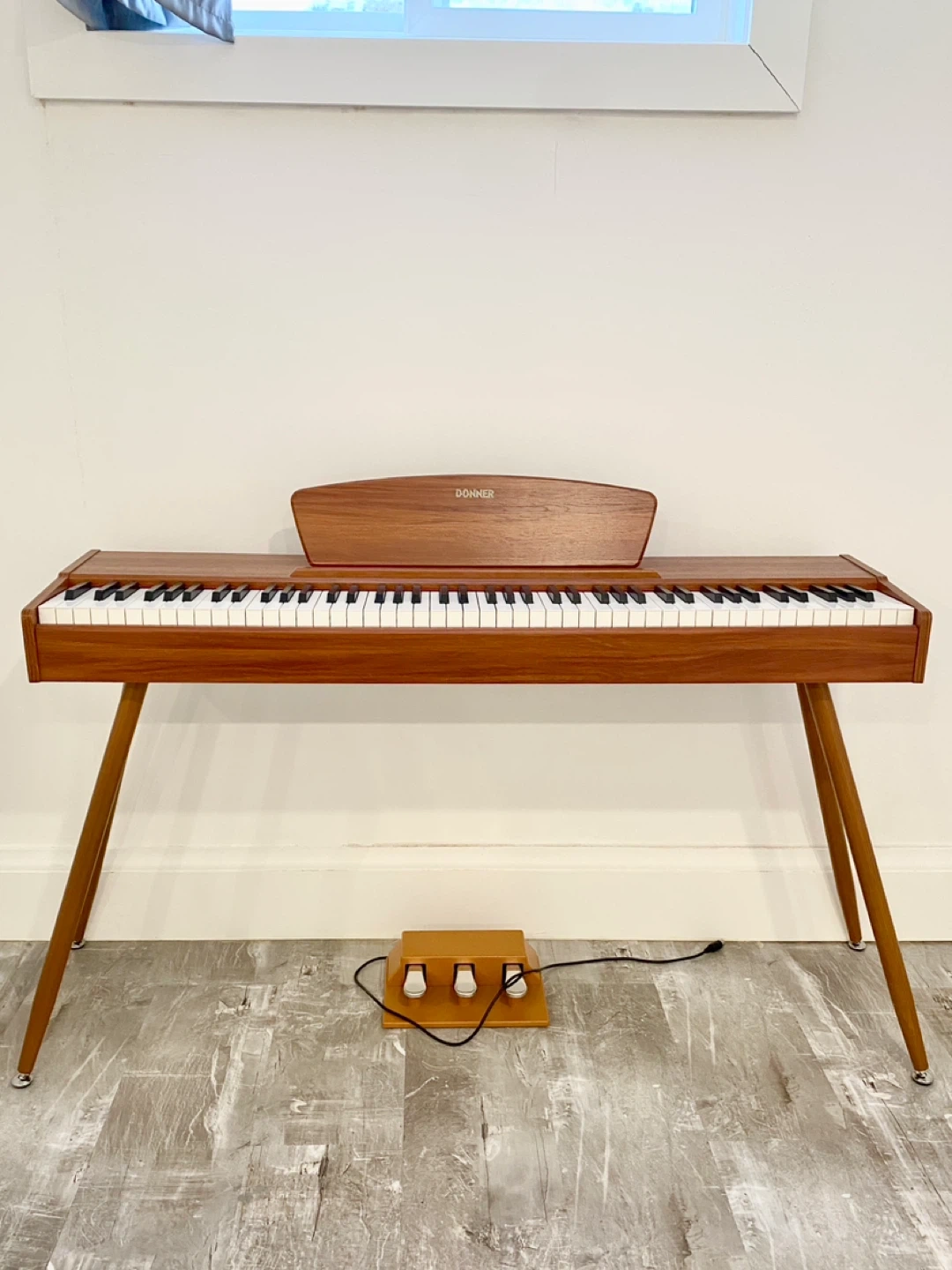 Selling a Donner DDP-80 wooden digital piano with 88-weighted keys. Classic look with wooden finish.