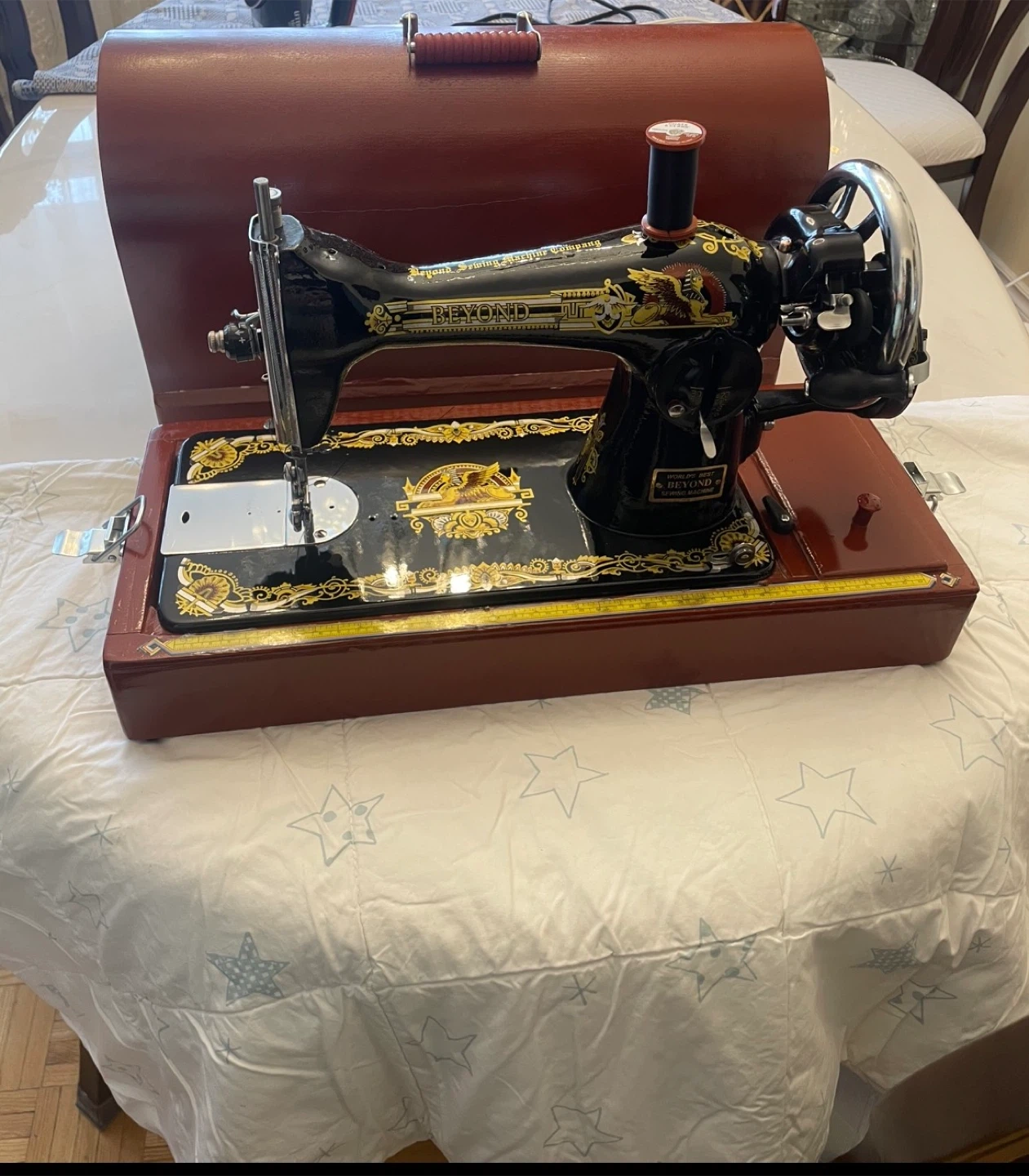 Selling a vintage Beyond sewing machine. It comes with its original carrying case, which is in great condition! The sewing machine has a beautiful design and would be a great addition to any collection or for practical use