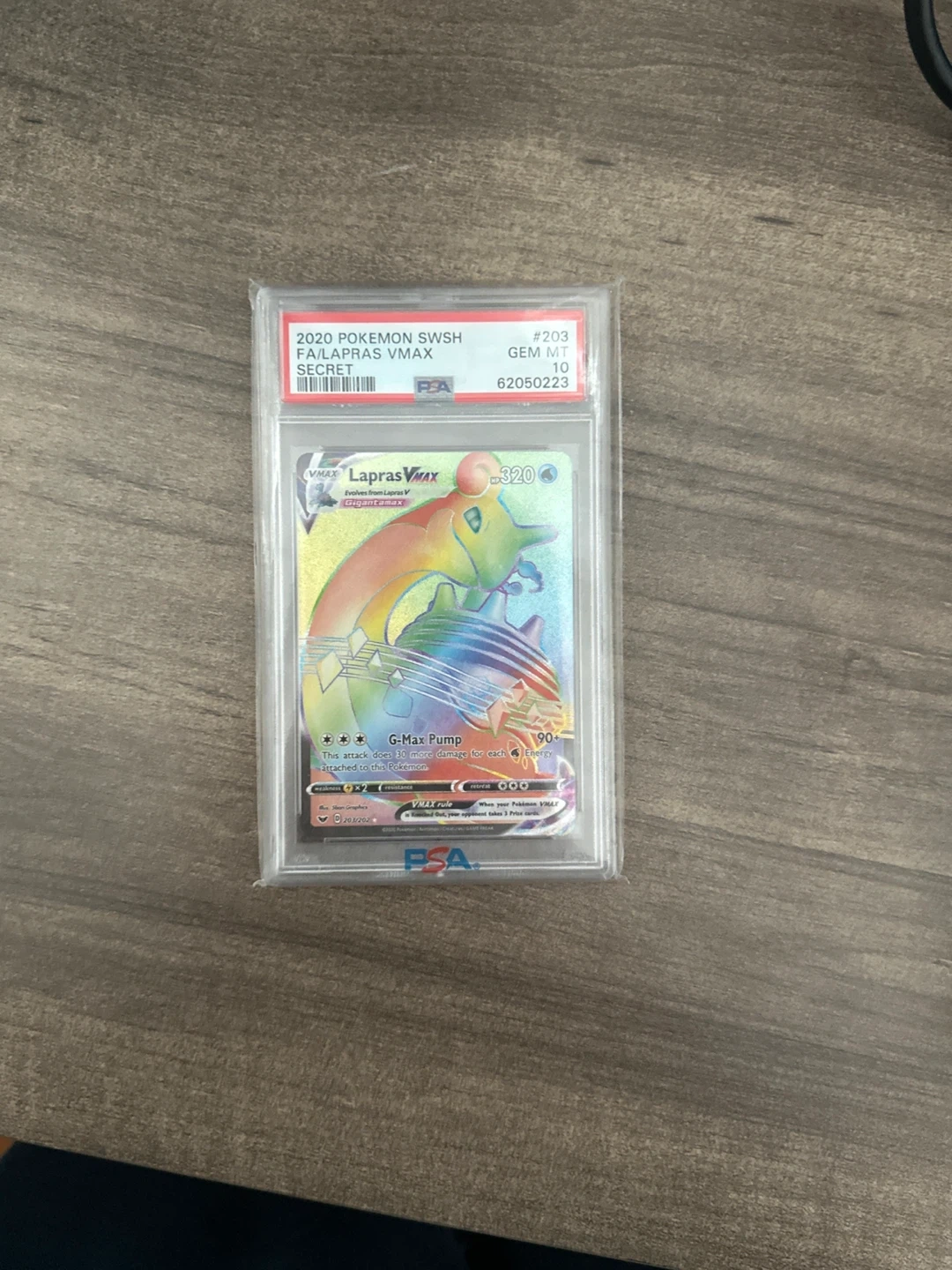 Selling a 2020 Pokemon SWSH FA/Lapras VMAX Secret card, graded GEM MT 10 by PSA. A great addition to any collection!