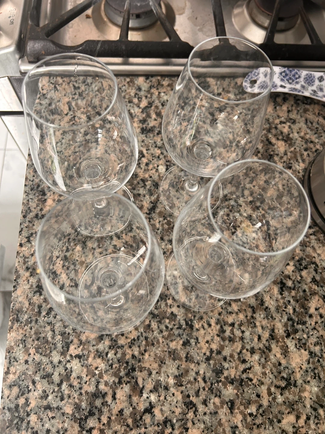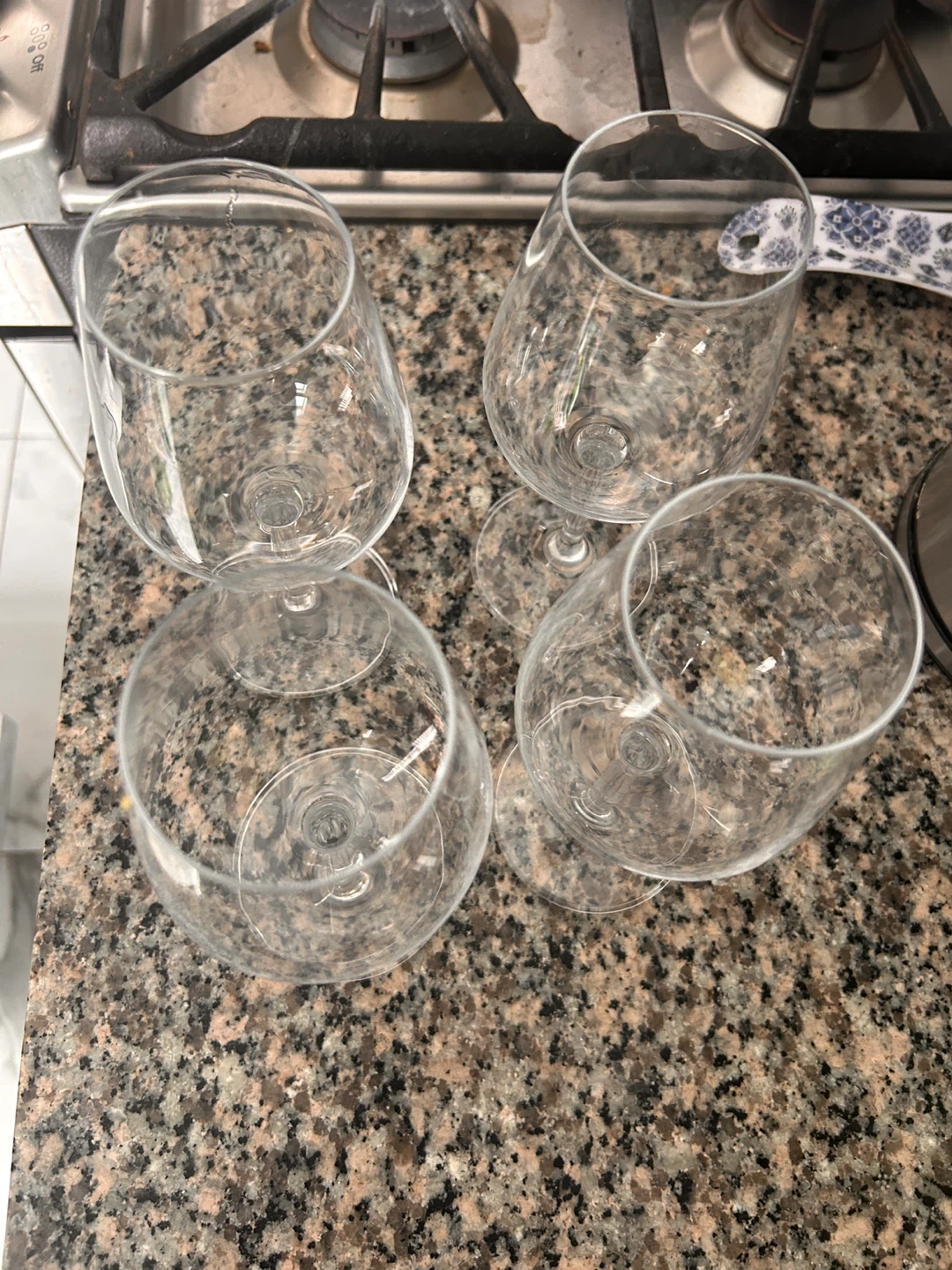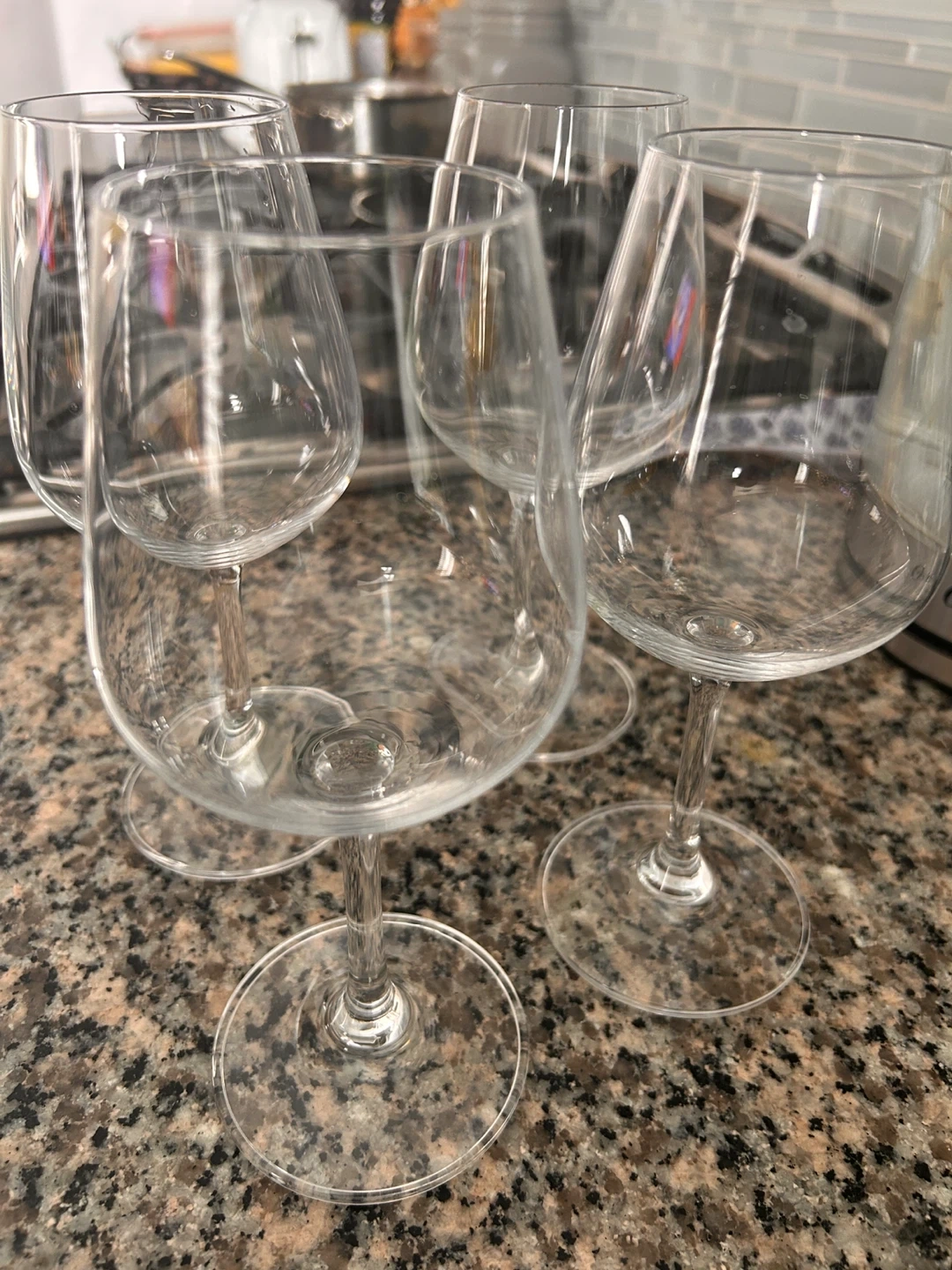 Selling a set of four wine glasses. They are in great condition and ready for your next dinner party or cozy night in! They're clear and classic, perfect for any type of wine or occasion.