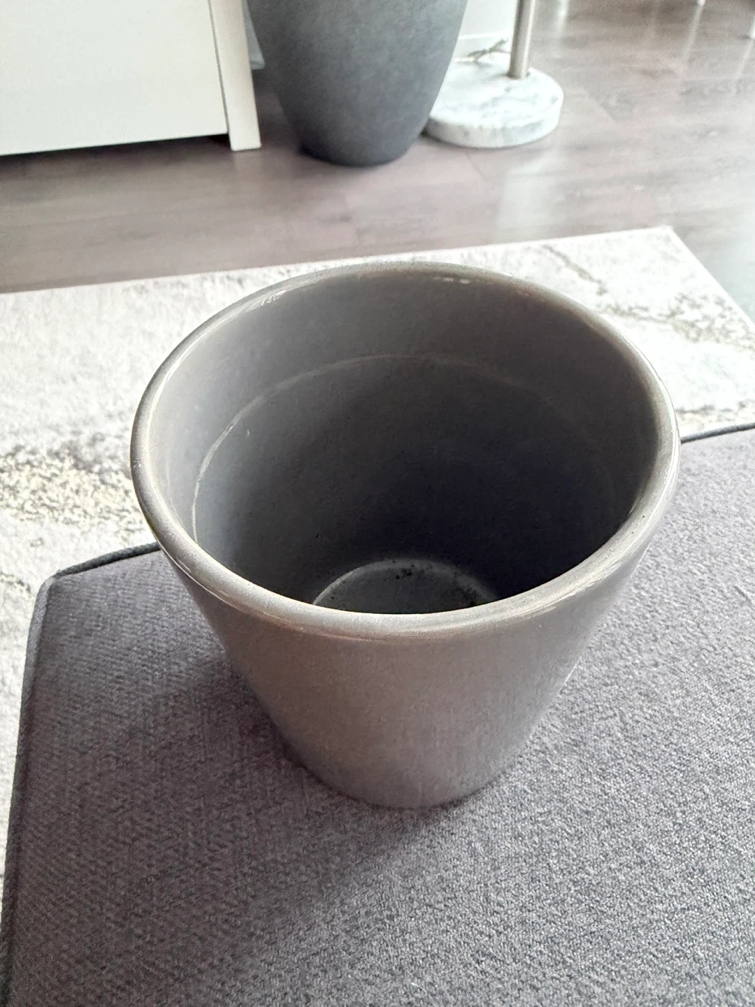 Selling a simple grey plant pot. It's in great condition and ready to add some greenery to your space! It's a neutral colour that will fit in with any decor