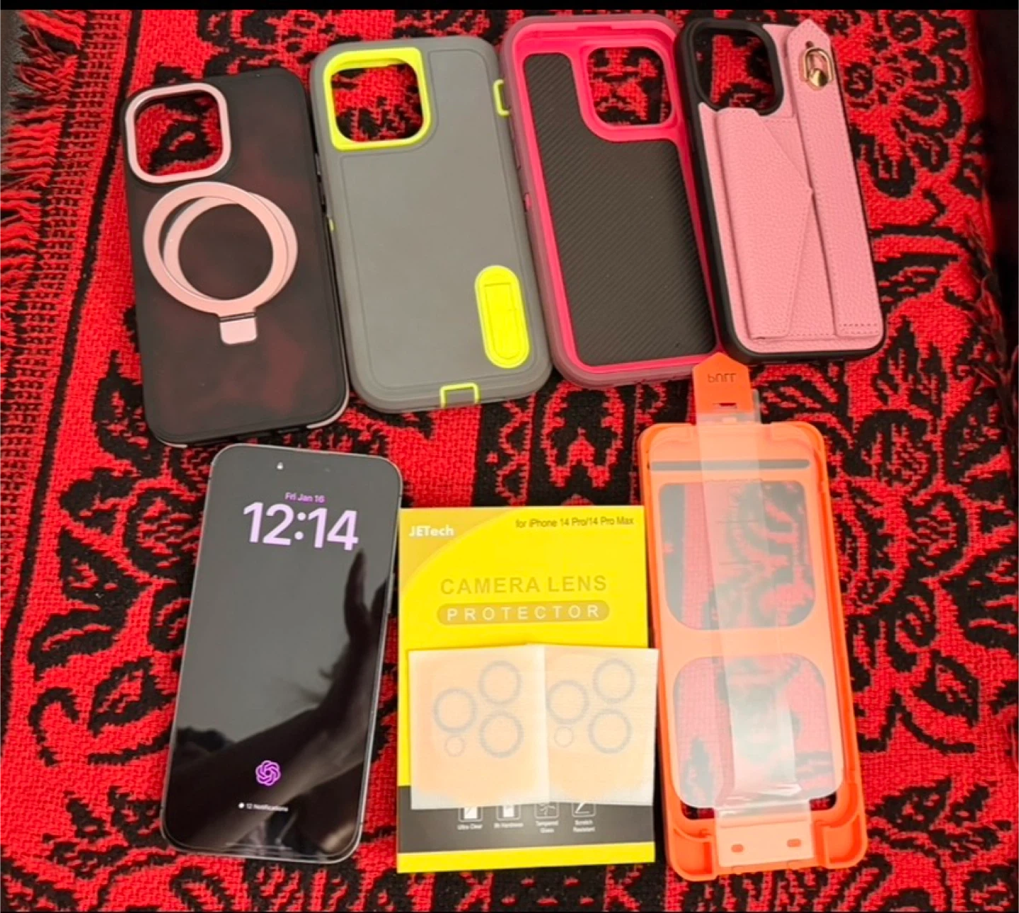 Selling my iPhone 14 Pro Max, deep Purple 128 GB in perfect condition. There are no scratches. No chips on the phone or the screen had screen tempered glass protector, and camera lens protector from the beginning with case on never took it off. No drops Comes with four cases come extra JETech camera lens protector! Tempered glass screen protector with easy install and a cable The phone is in great condition. The battery health is at 88%.