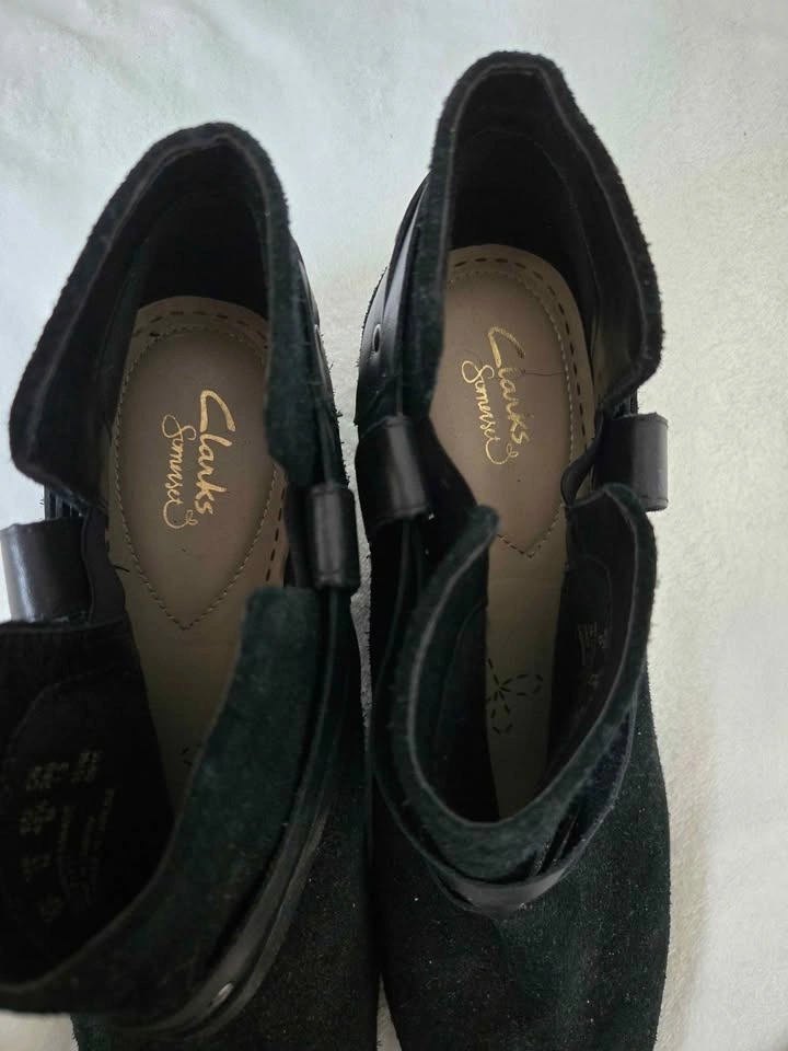 Clarks Black Suede Booties, Size 11M