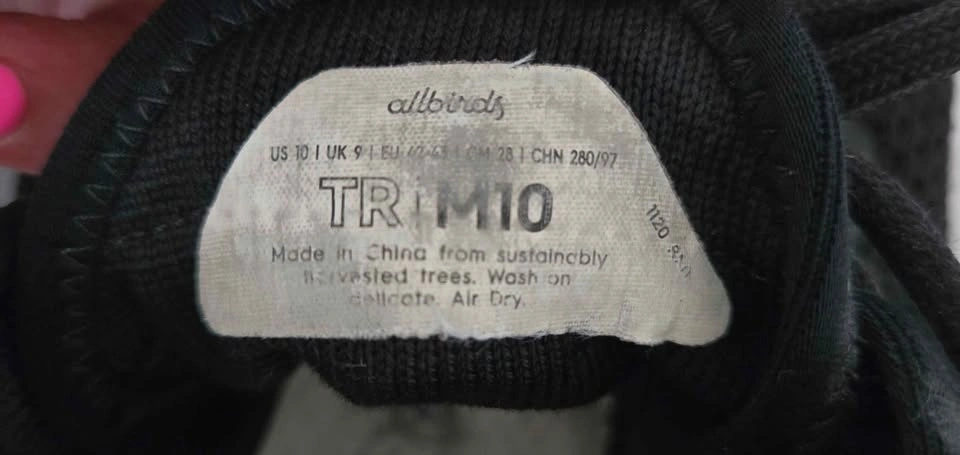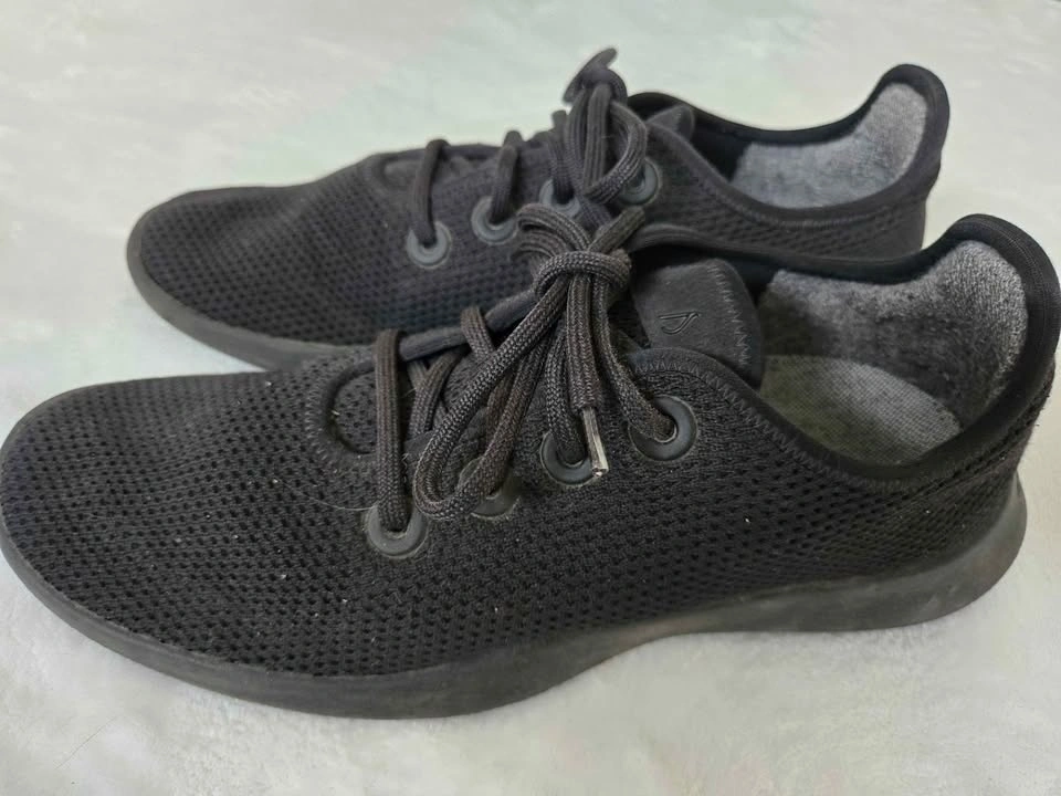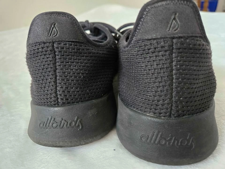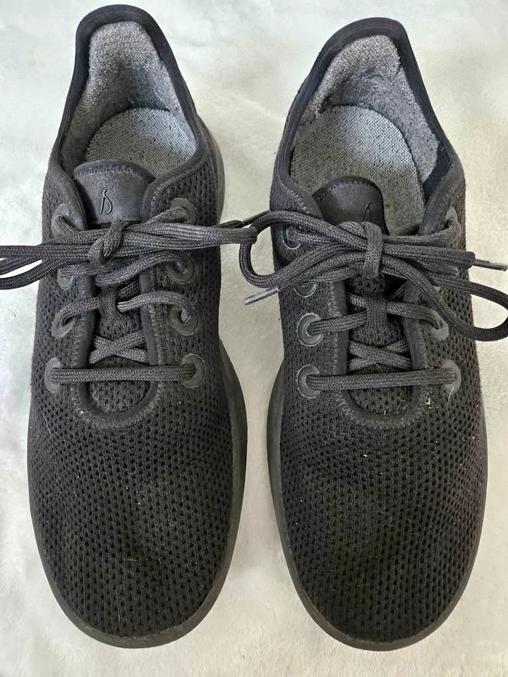 Black mesh Allbirds sneaker, size Men's 10. Made from sustainably harvested trees. Washable.