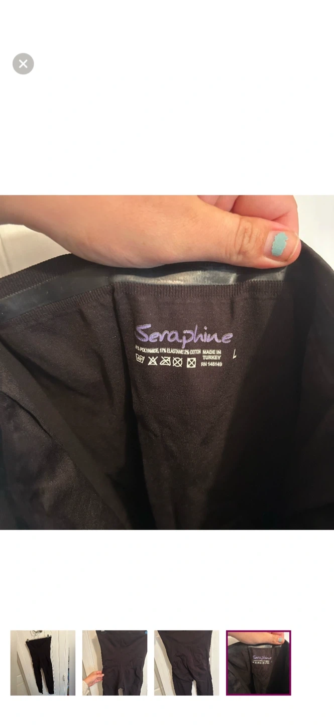 Seraphine brand. Post partum tummy tuck slimming leggings. Full Ankle length. Black in colour. Size large. Brand new condition