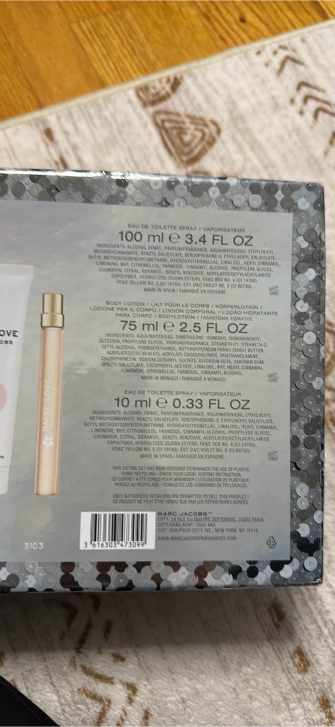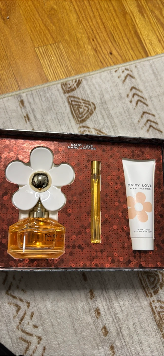 Selling a Marc Jacobs Daisy Love gift set! Includes eau de toilette spray 100ml/3.4 fl oz, body lotion 75ml/2.5 fl oz, and eau de toilette spray 10ml/0.33 fl oz. Comes in the original box
