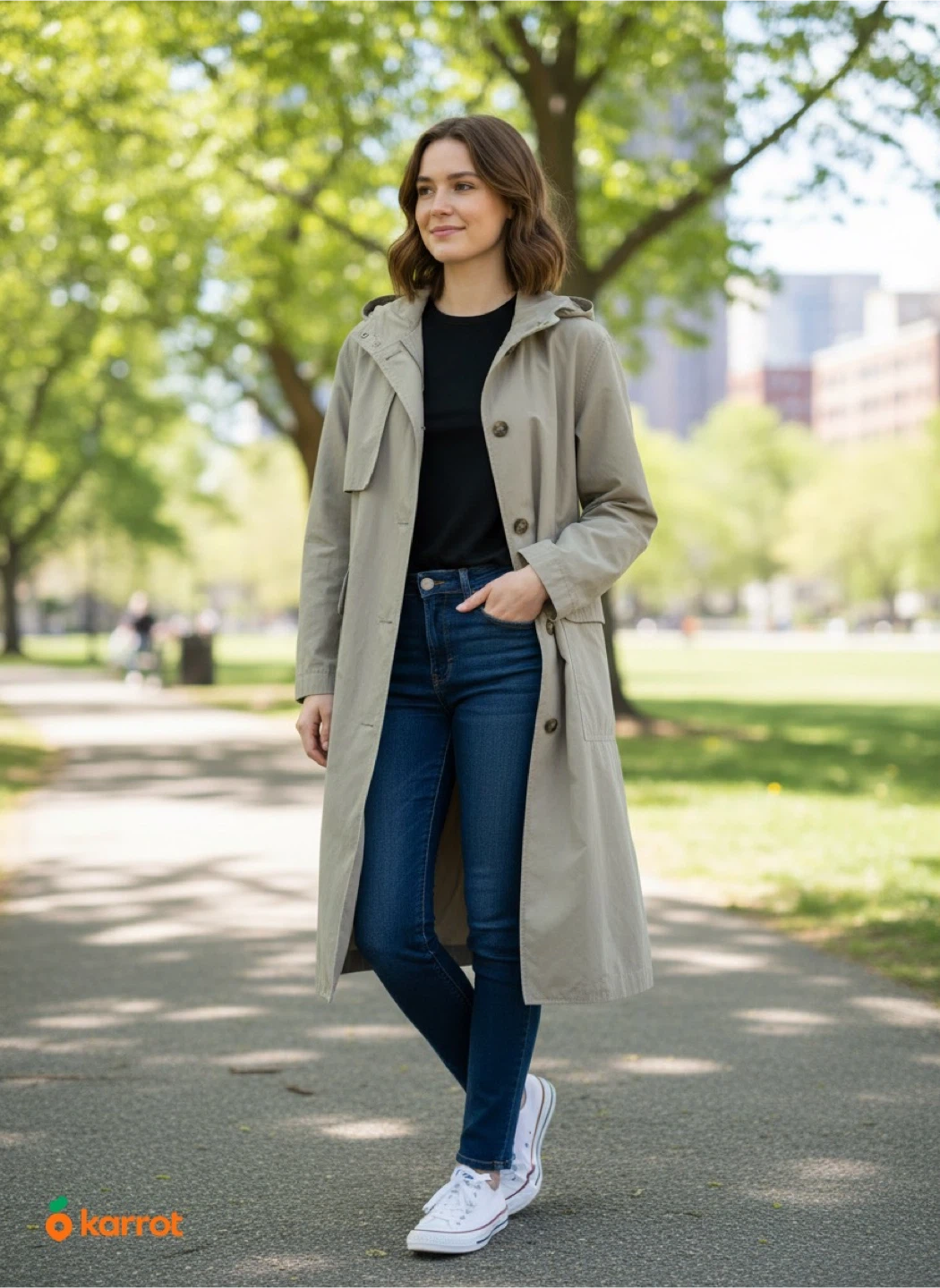 Selling a hooded trench coat.