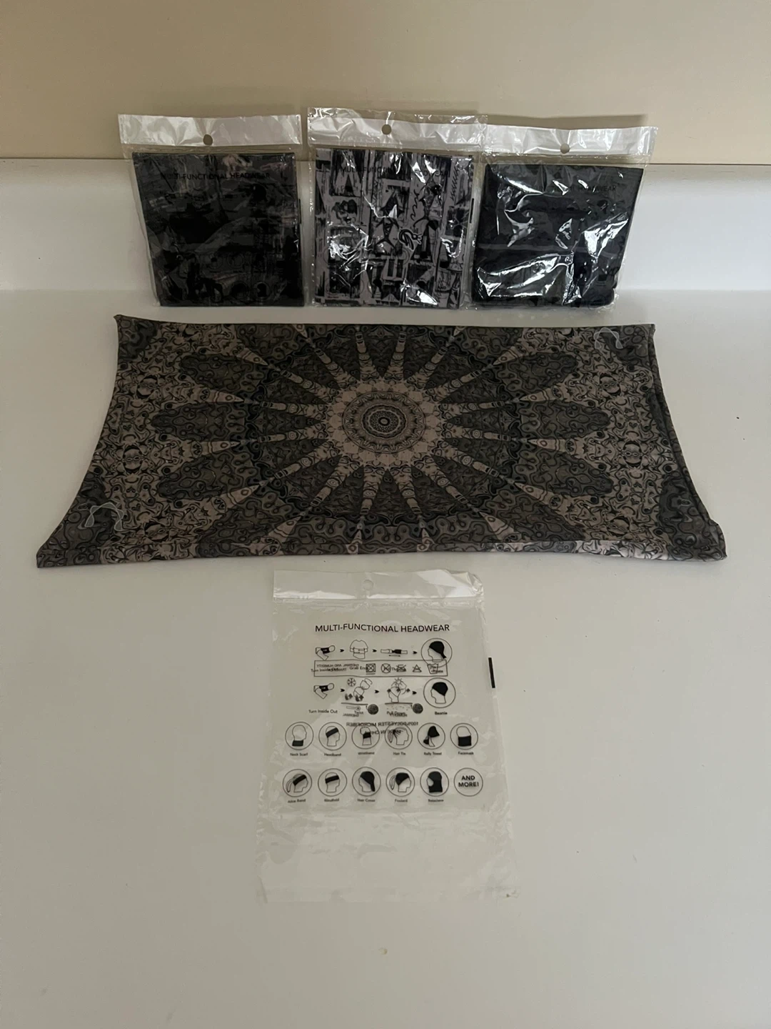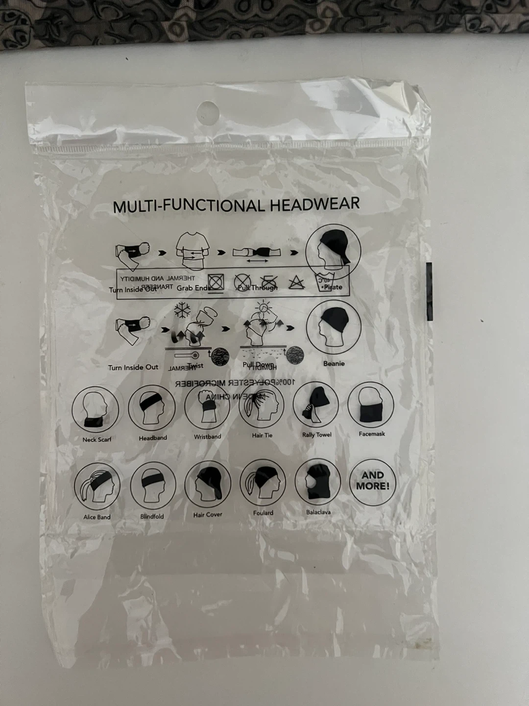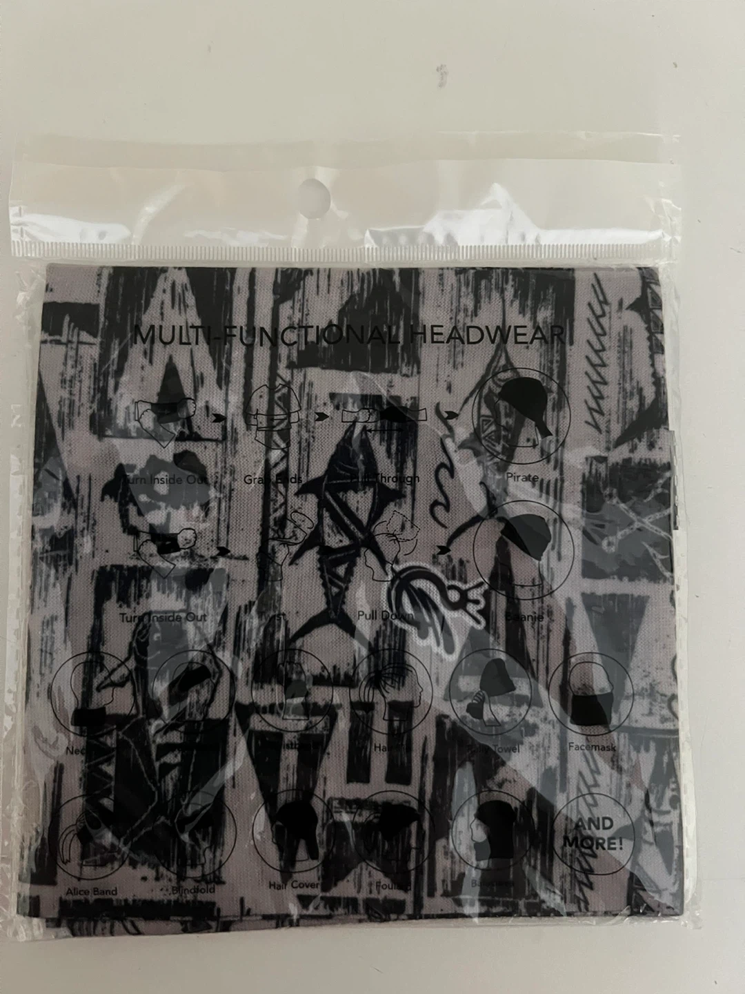 Brand new multi-functional headwear, still in its original packaging! These can be used as a neck scarf, headband, wristband, hair tie, rally towel, facemask, alice band, blindfold, hair cover, foulard, balaclava, and more!