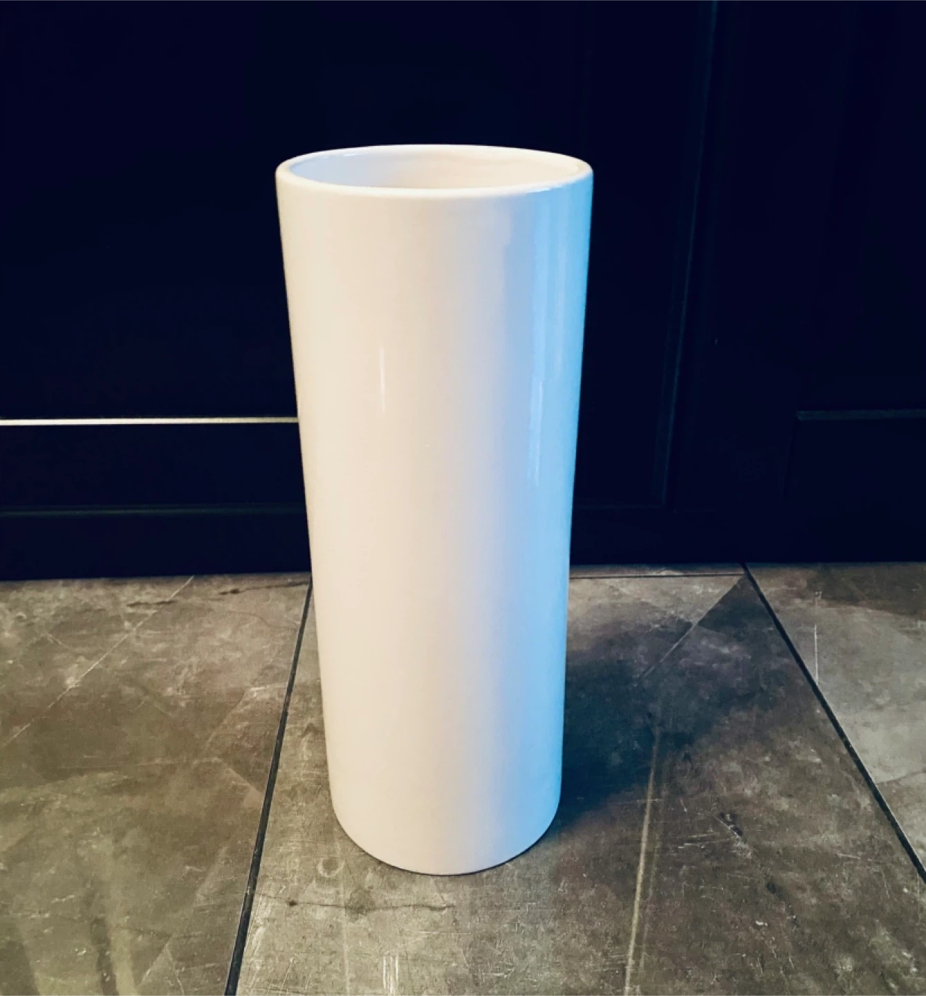 Selling a minimalist tall white ceramic vase. It's in excellent condition and ready to brighten up any room. Matches most modern decor styles. Strong and good quality. Retails for $20+tax at Loblaws. Measurements: 12 inches tall, 4.5 inches across #scandi #japandi #modern #minimalist #contemporary #neutrals