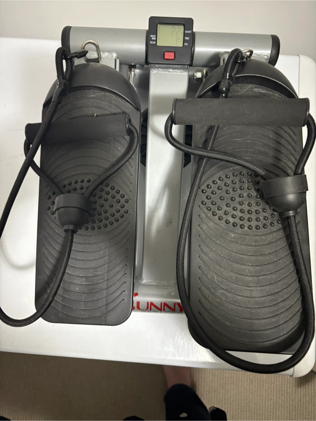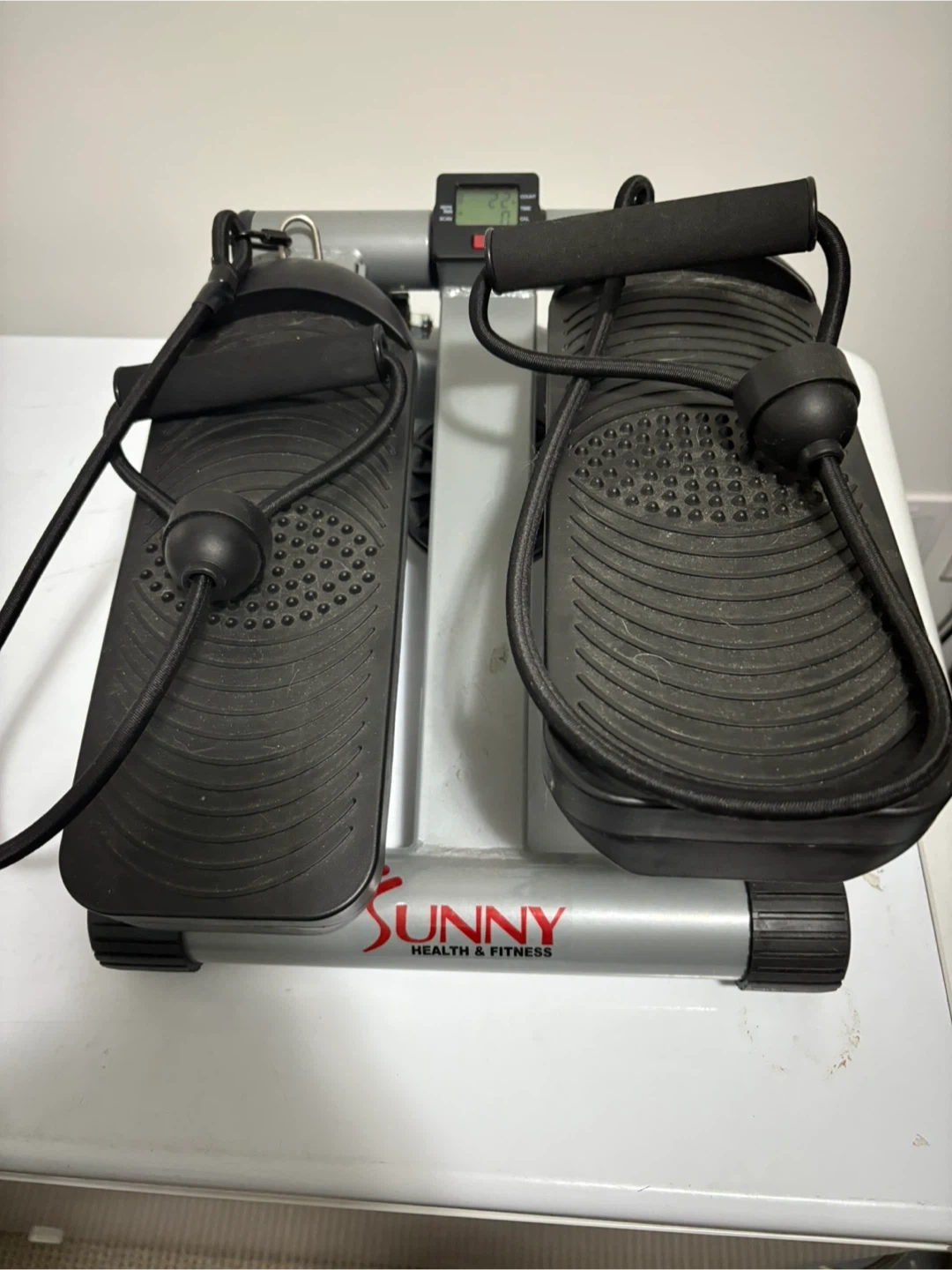 I'm selling a Sunny Health & Fitness mini stepper in great condition! It's perfect for getting a workout in at home. It features resistance bands for a full body workout and a digital monitor to track your progress