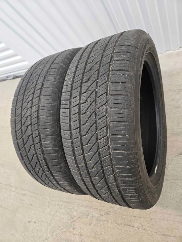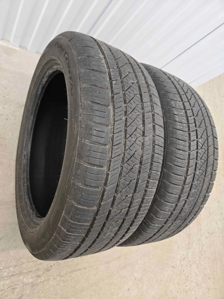 Two Continental Pure Contact all season tires. 235/50R18 with very good tread for more seasons use.